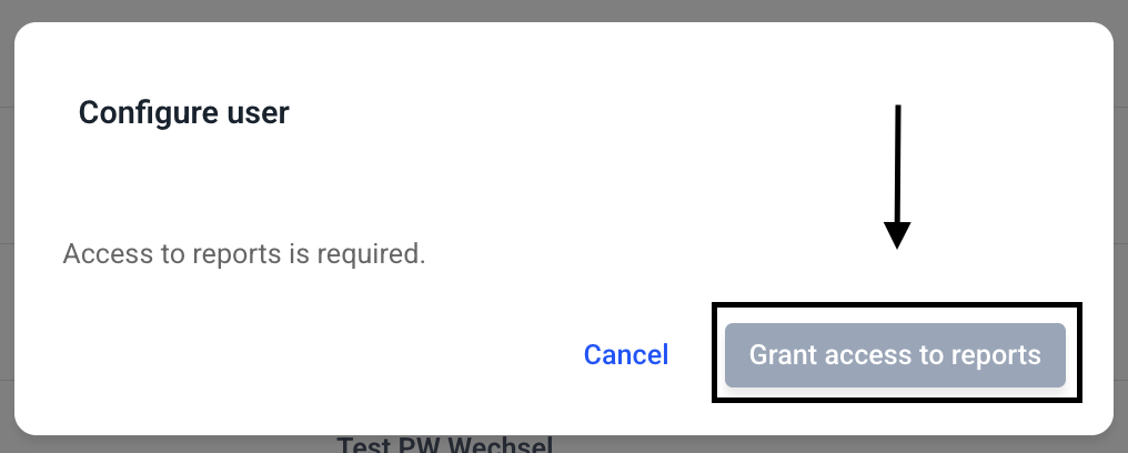 Click Grant access to reports to grant the user access to all reports that you can access.