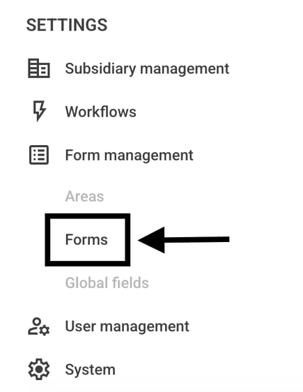 Each form can be translated. To do this, first navigate to the Form management and click on Forms.