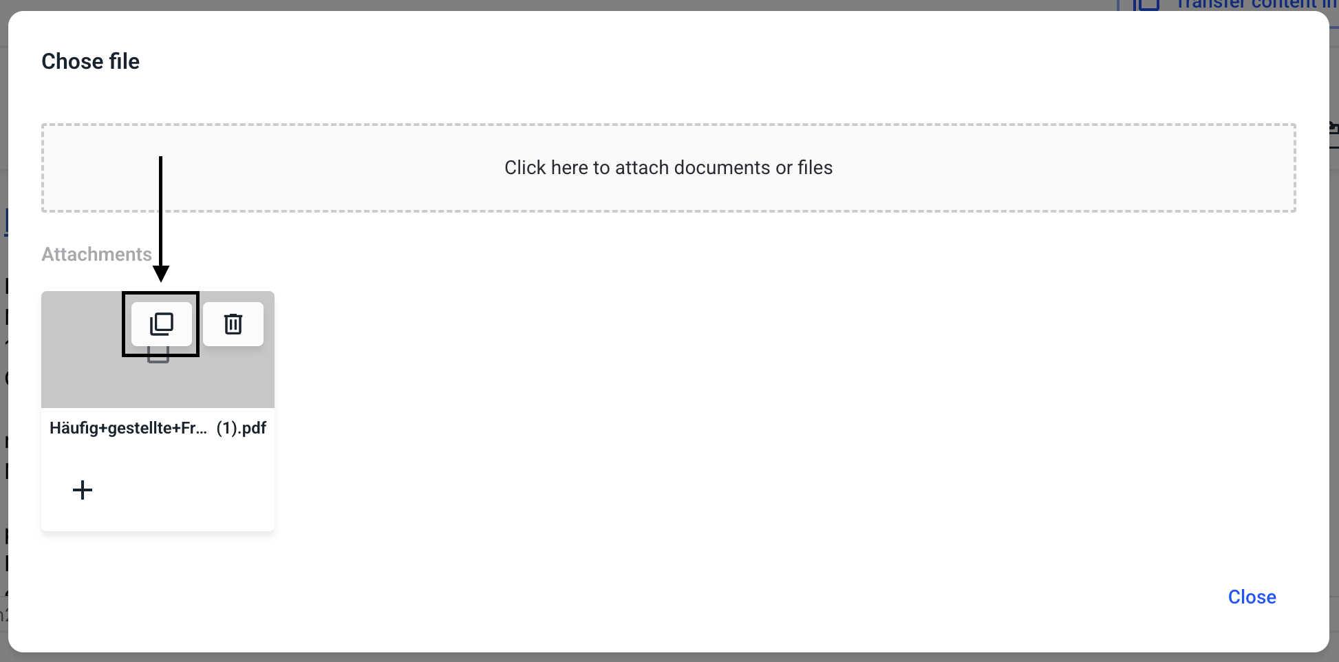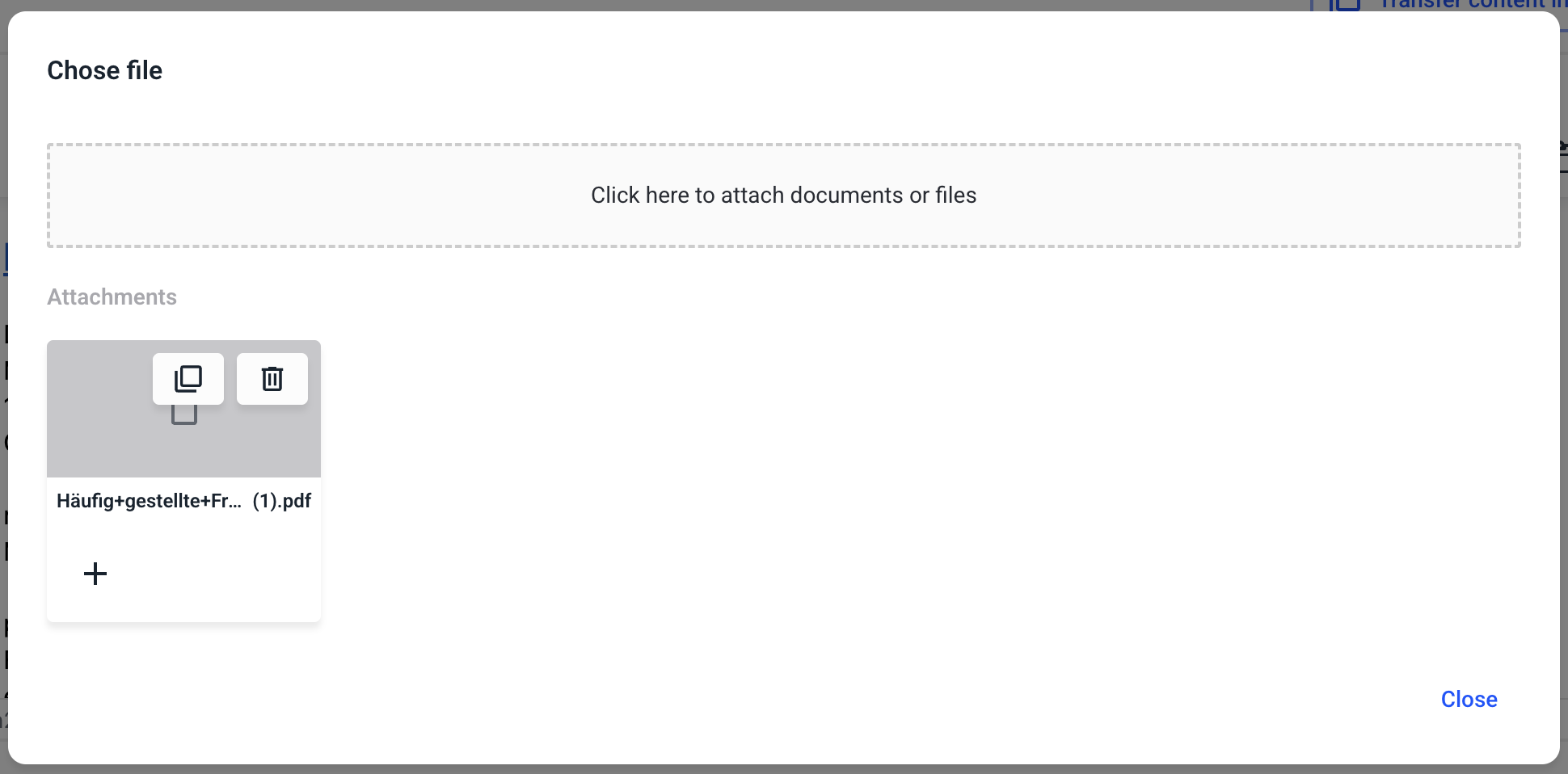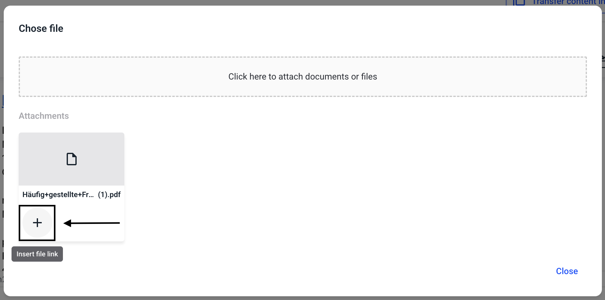 By clicking on the plus you can paste the link to the PDF document into the text field.