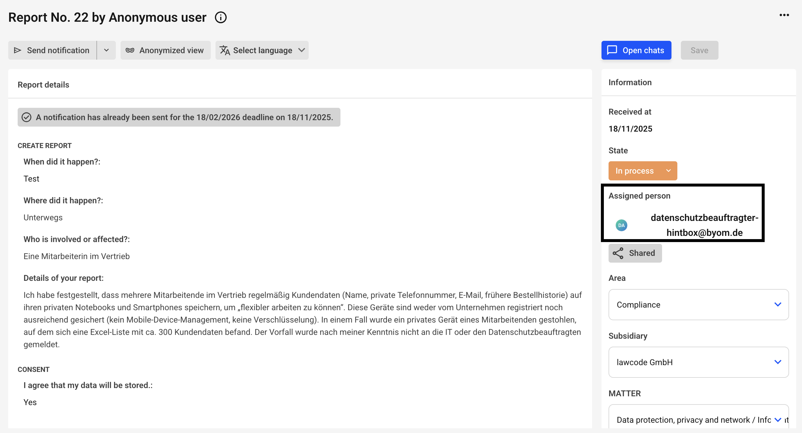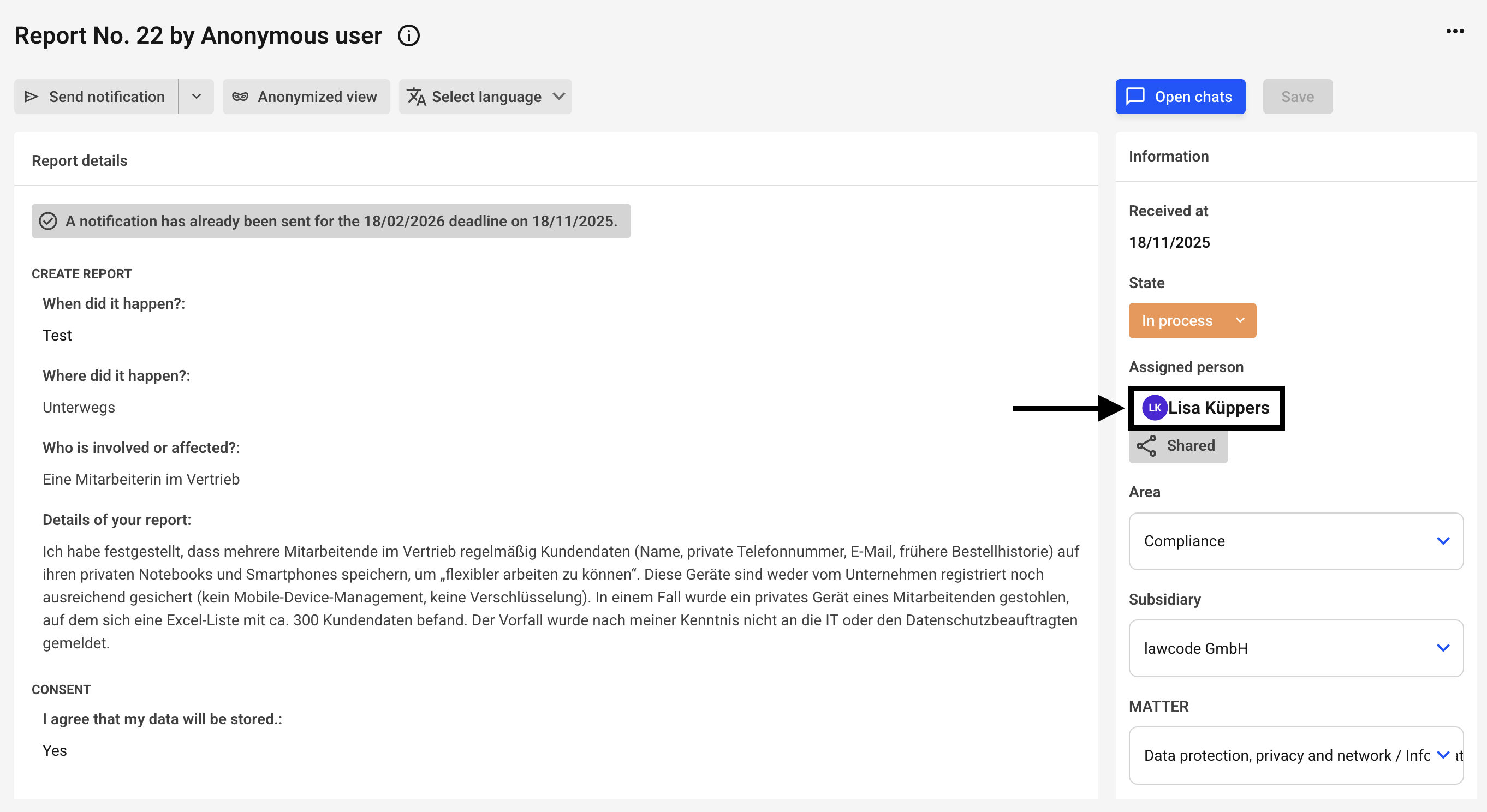 By clicking on the black bordered edit pen you can adjust the responsible editor of the note