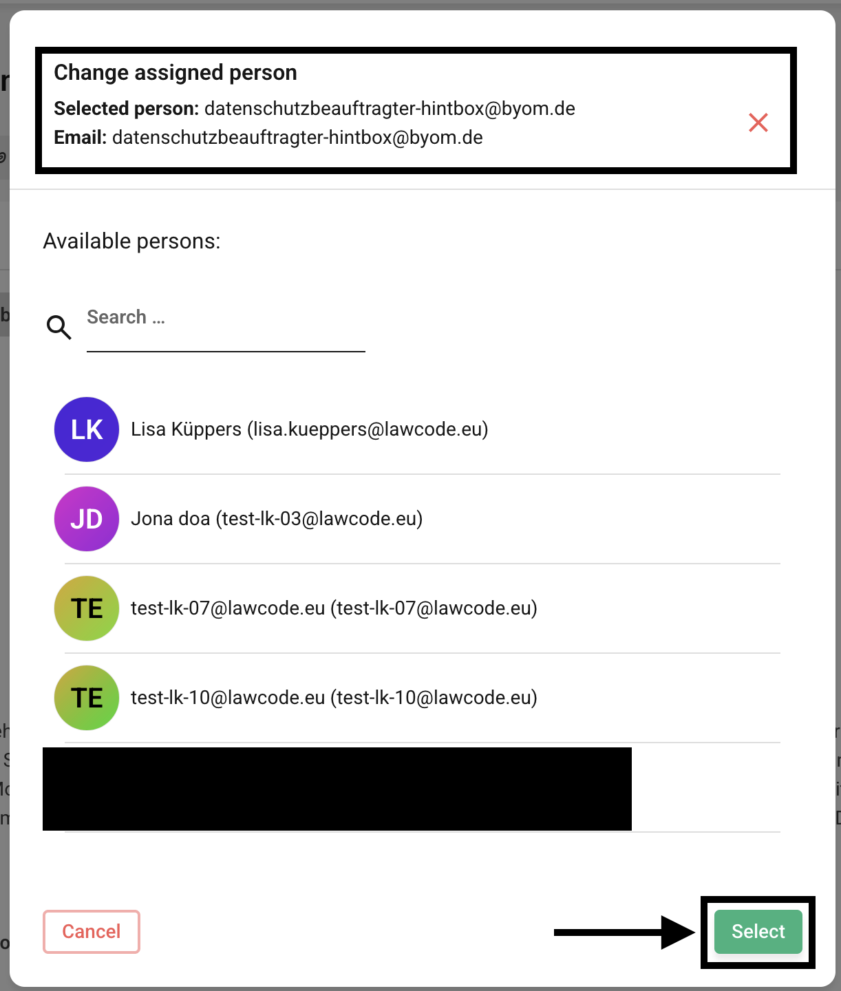Then the dialog for selecting a responsible editor opens, you can select them with one click.