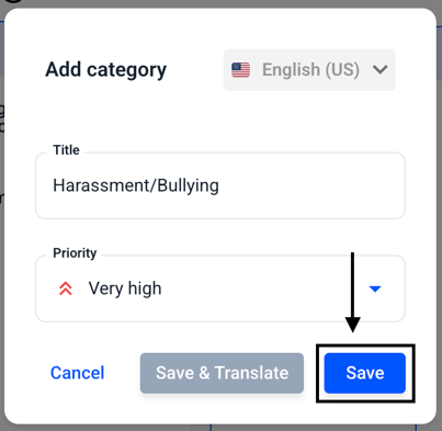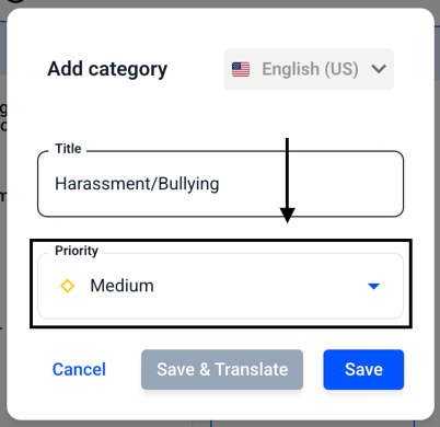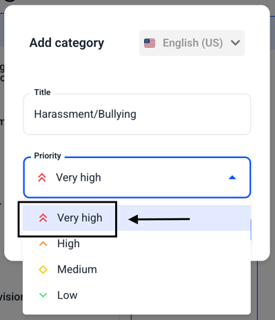 For the priority you can select either Low, Medium, High or Very High. Click on the respective category to select it.
