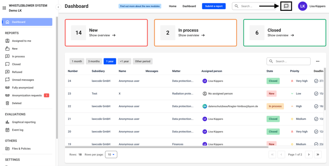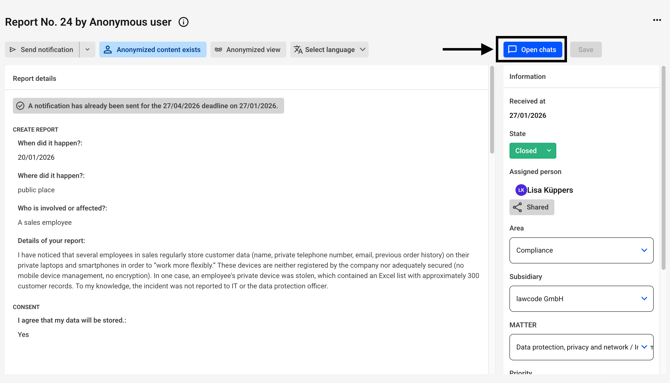 Alternatively, the chat can also be found on every report.