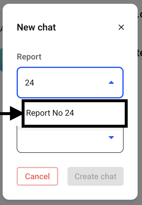 If you want to create a chat based on a report, you must enter the report number and then select the report.