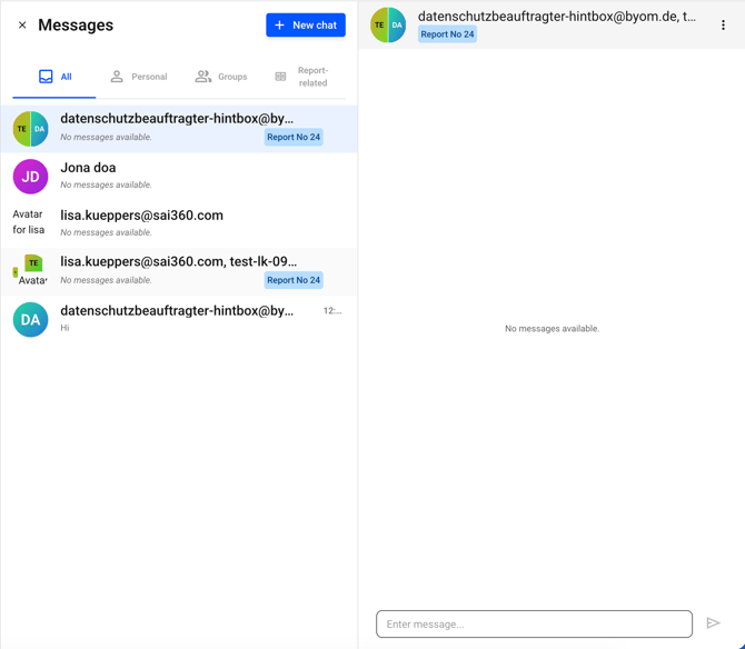 To create a chat, you must select the participants. If you select one participant, the chat is private; if you select multiple participants, it is a group chat.