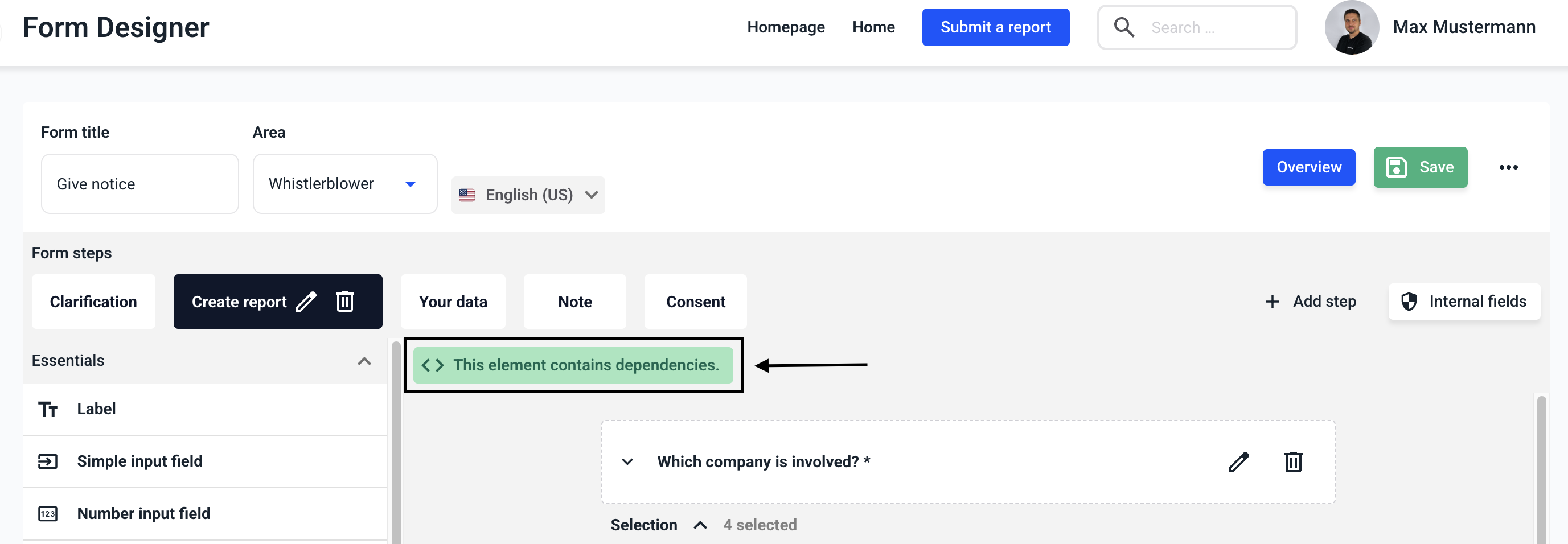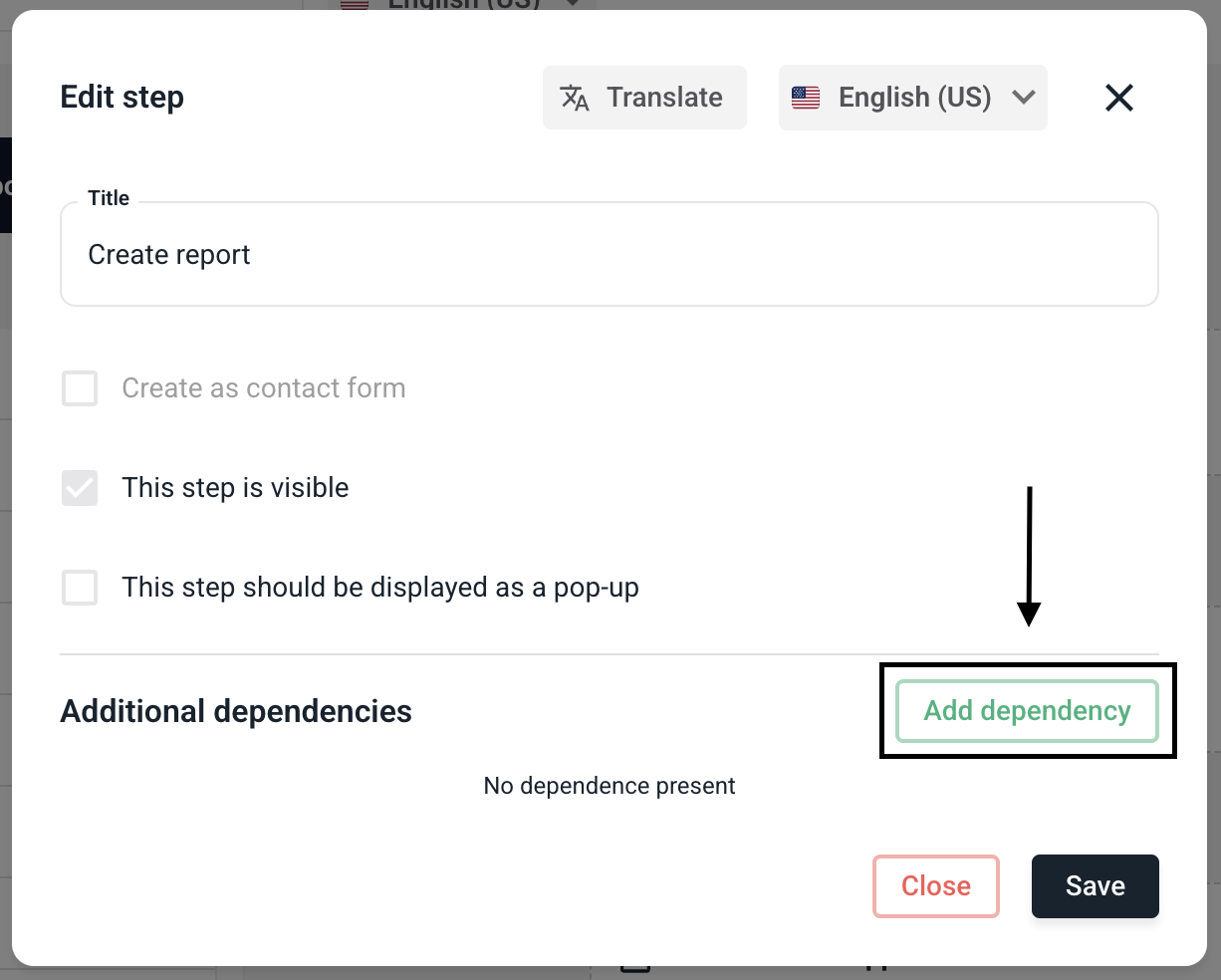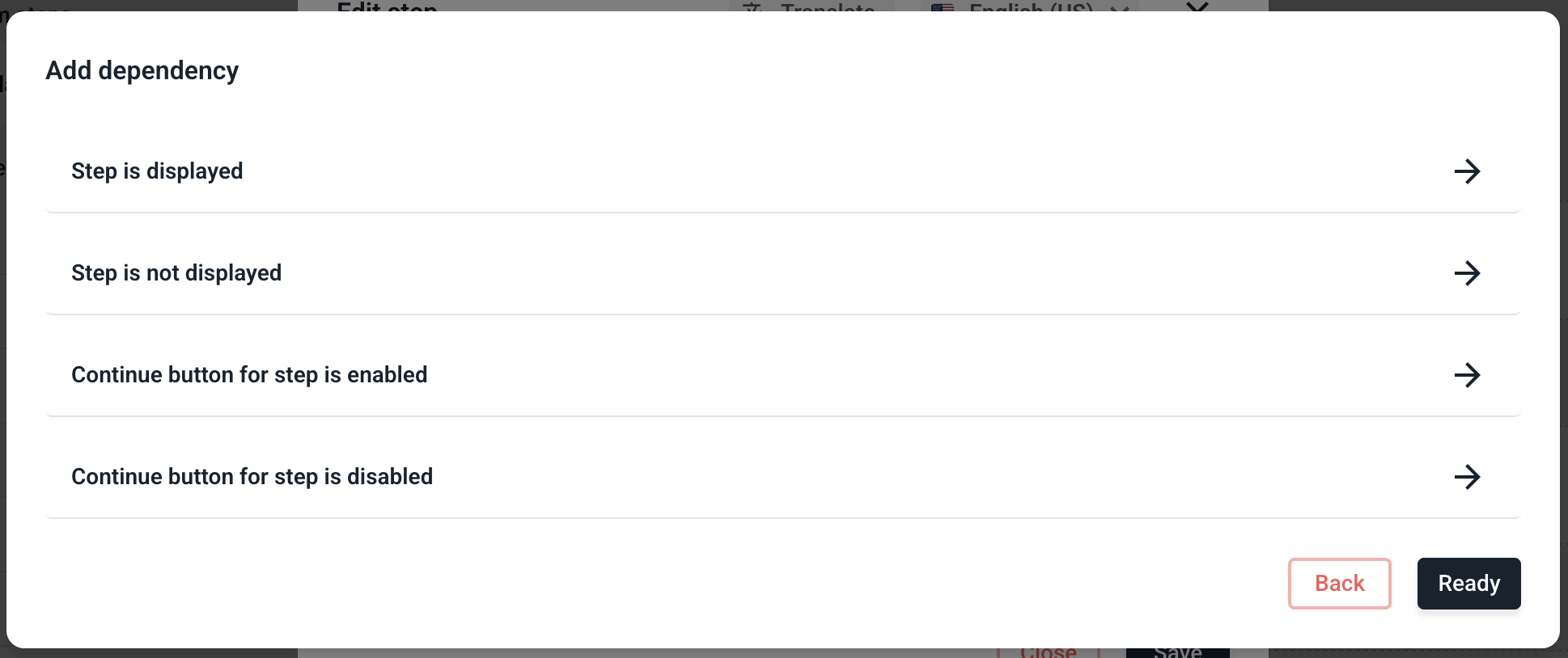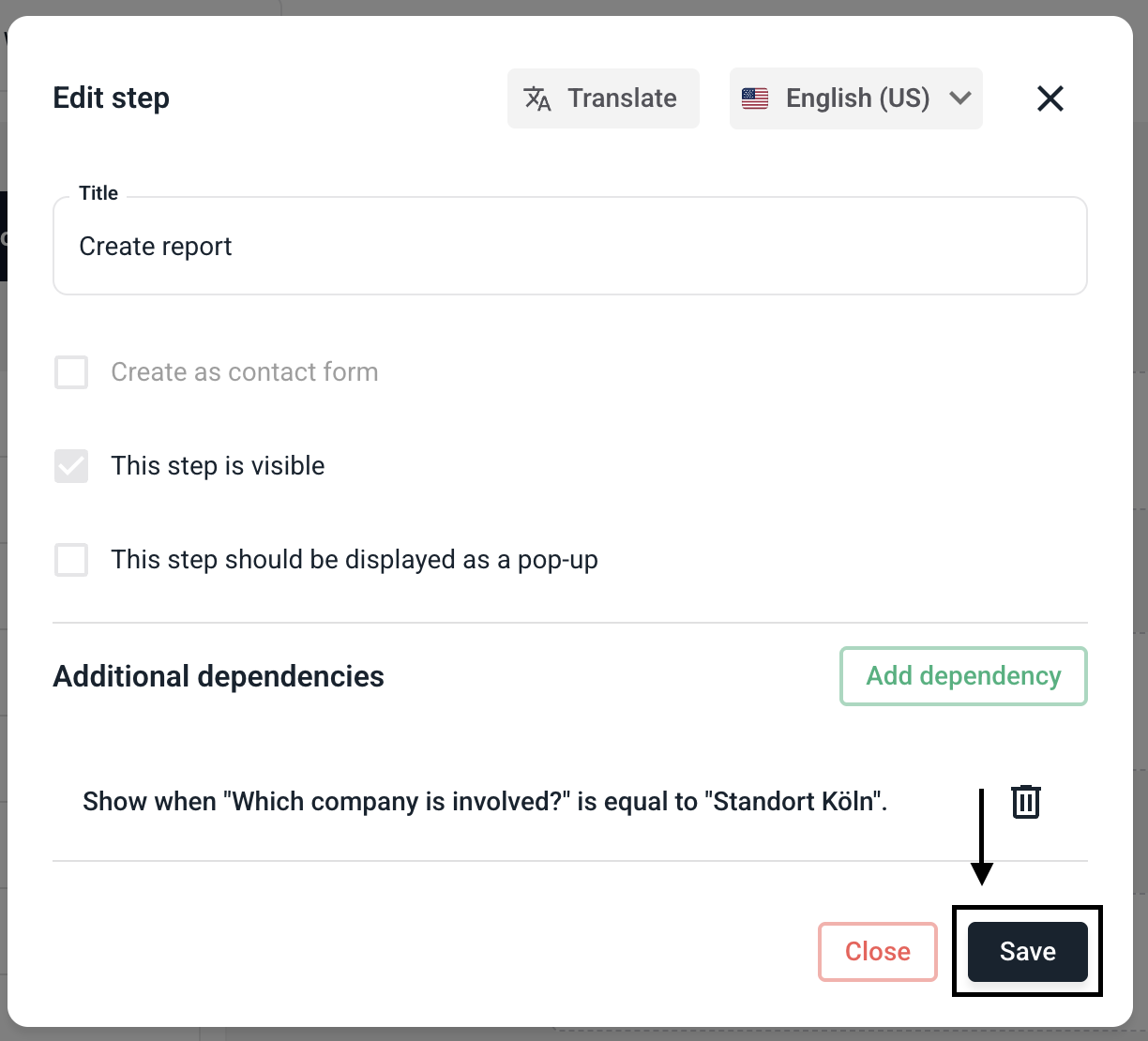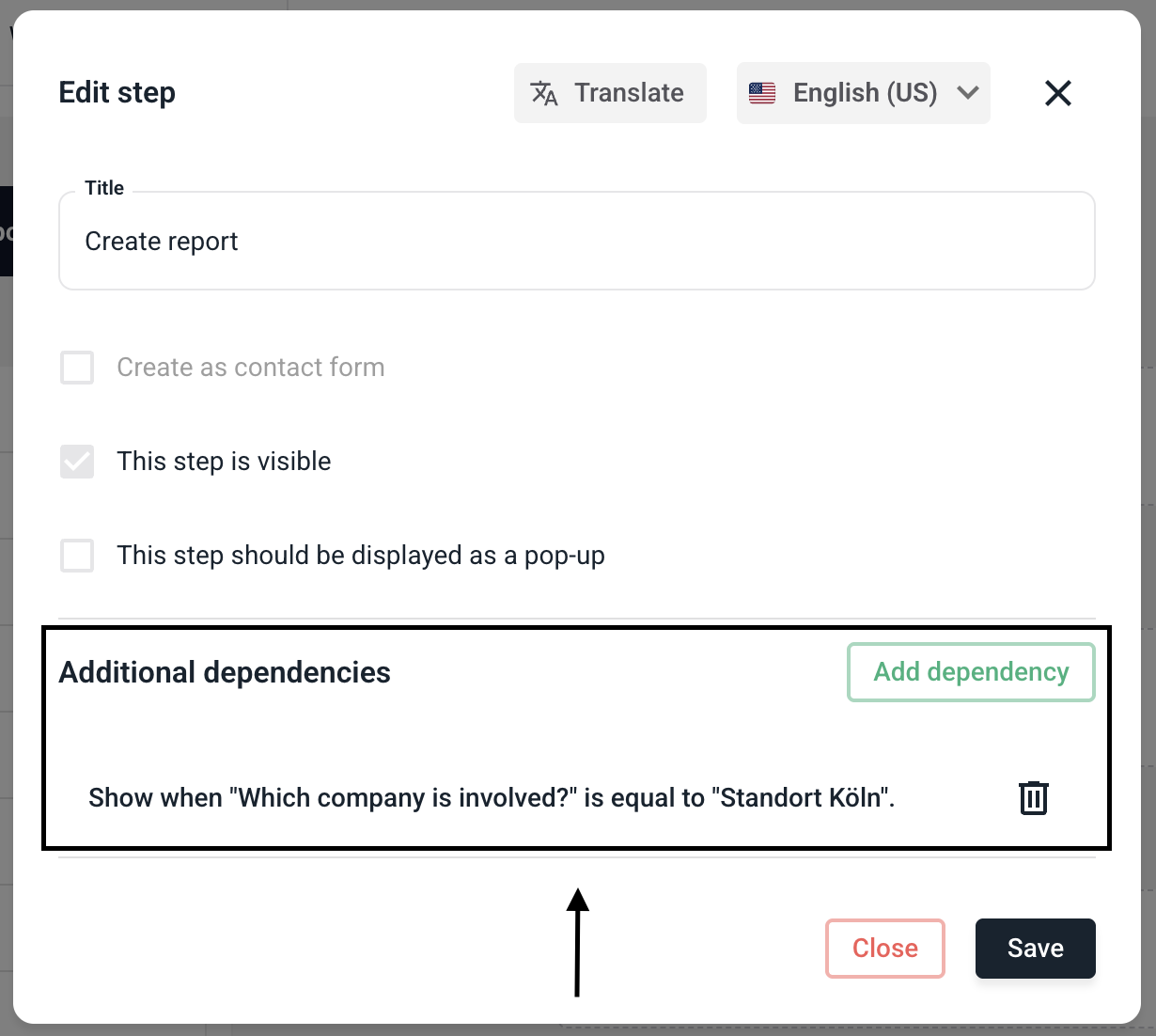 The dependency has now been added. The step is now only displayed if the dependency is fulfilled. Infinite dependencies can be added in one step.