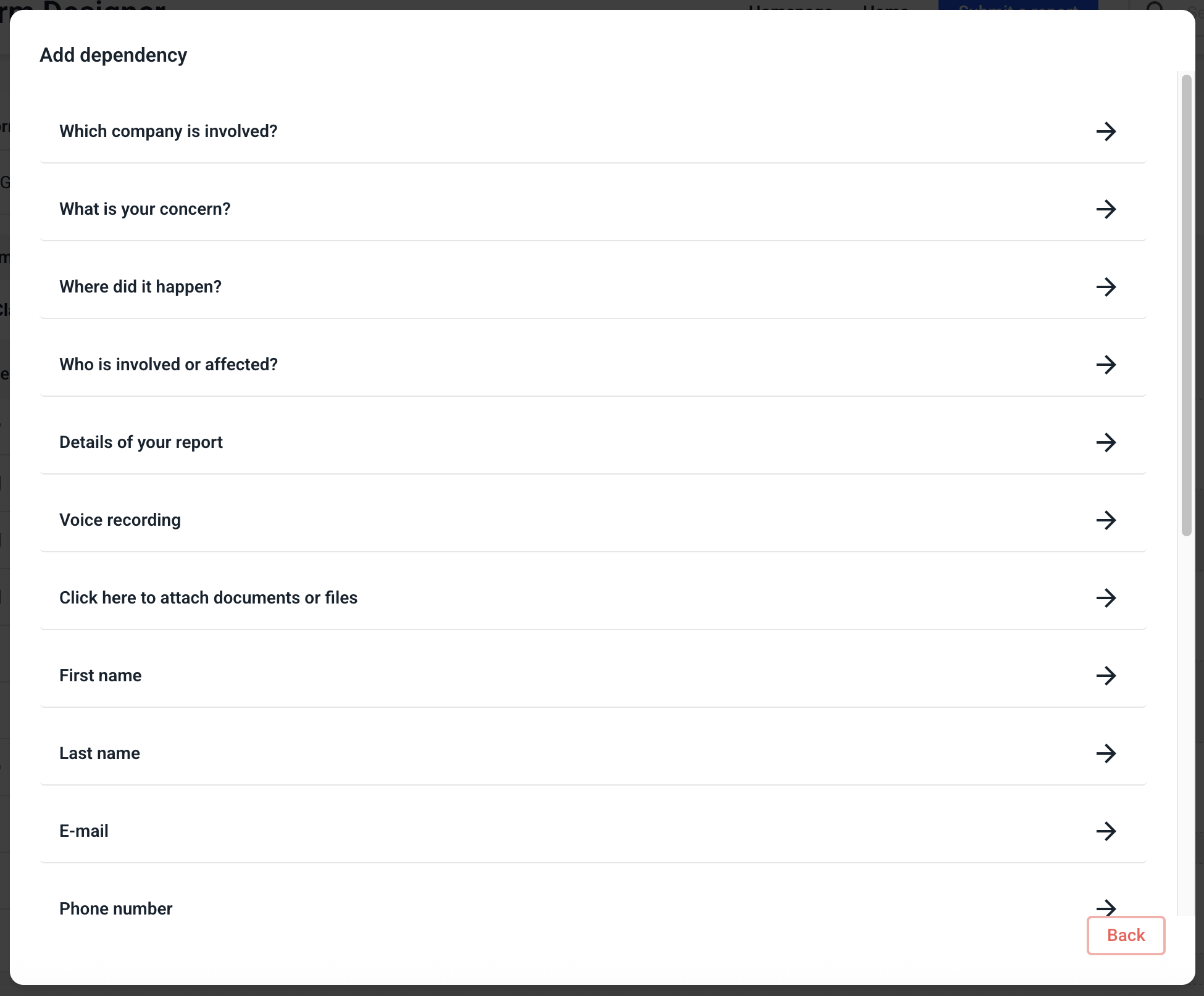 Dependencies in steps allows you to add a dependency to another field for each desired step in your form.