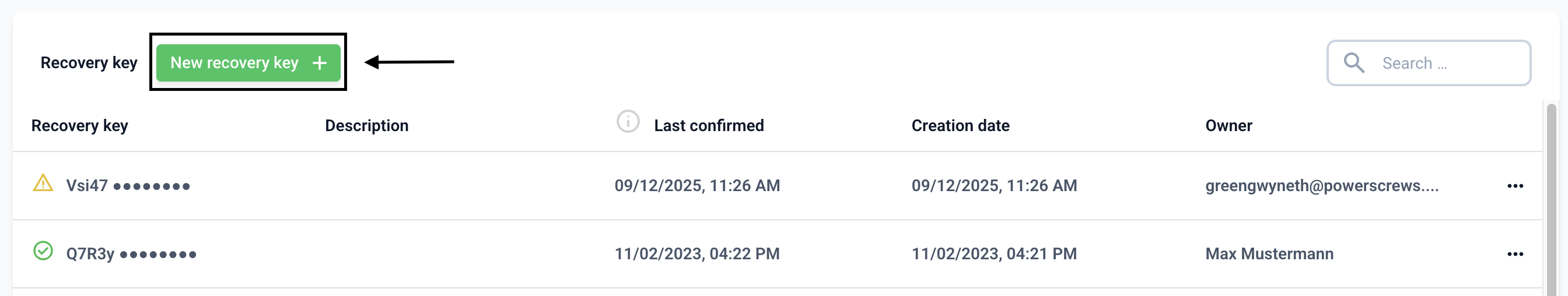 After creation you have the possibility to download or copy the recovery key. Clicking Next will take you to the next dialog.