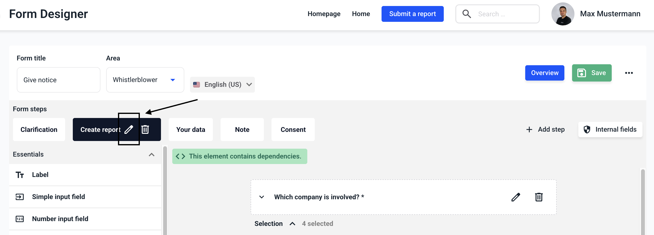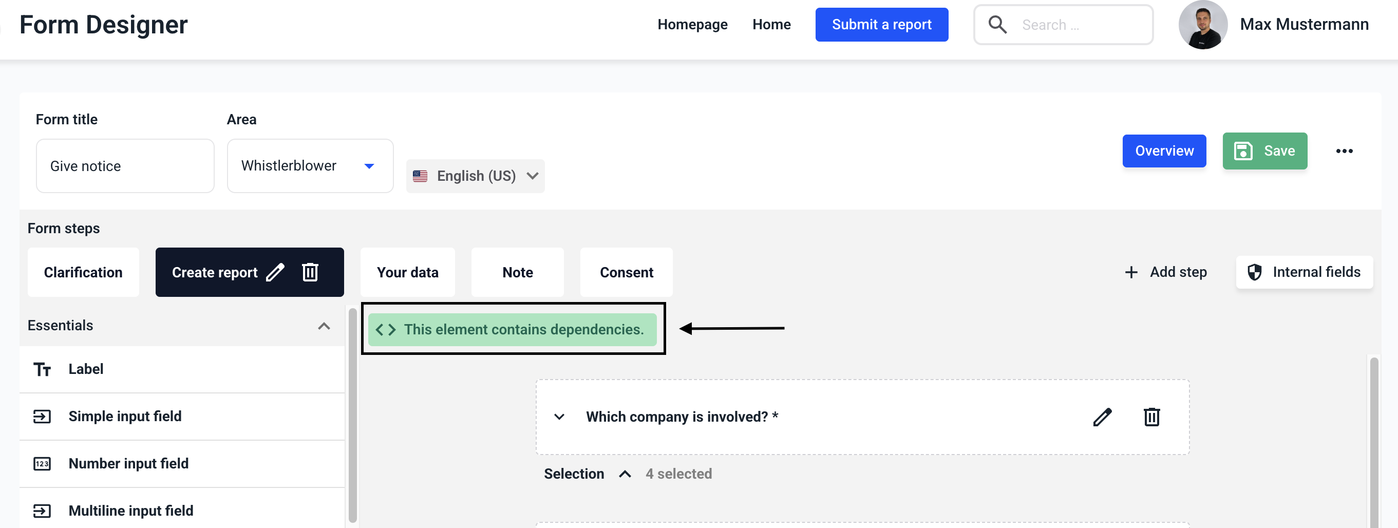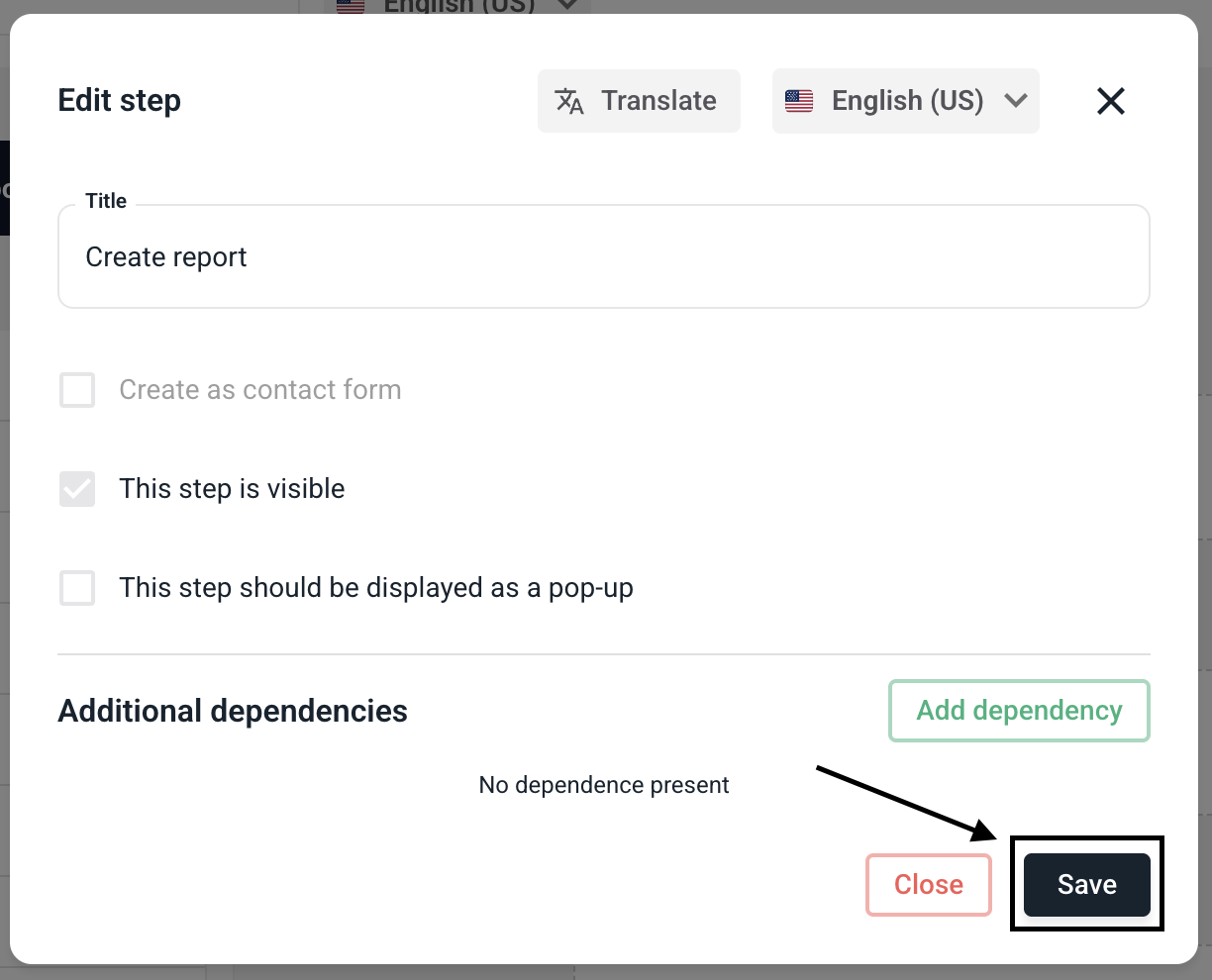 Dependencies in steps allows you to add a dependency to another field for each desired step in your form.