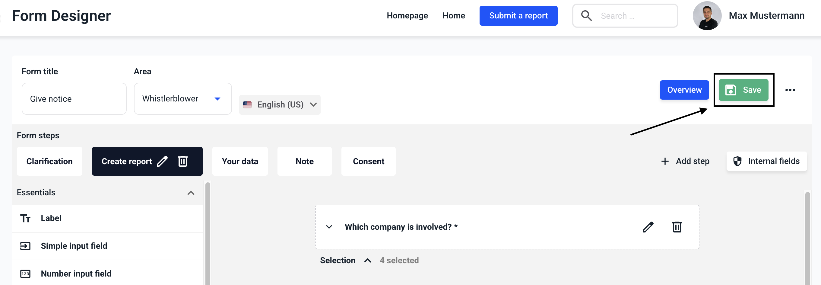 Click on Save to apply the changes to the entire form.