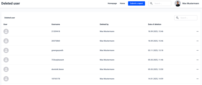 By clicking on the three dots next to the user, a user can be permanently removed from the system.