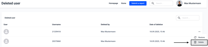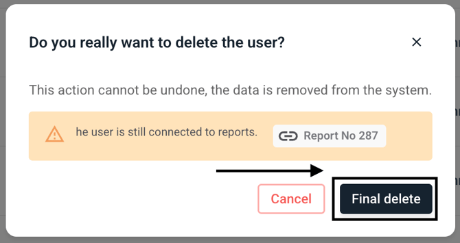A prompt will appear asking whether the user should really be deleted. After clicking on Final delete, the user will be permanently removed from the system.