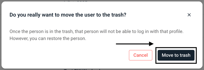 A prompt appears asking whether you really want to delete the user. Now click Move to trash.