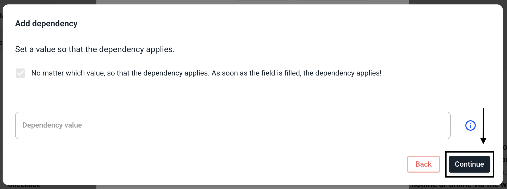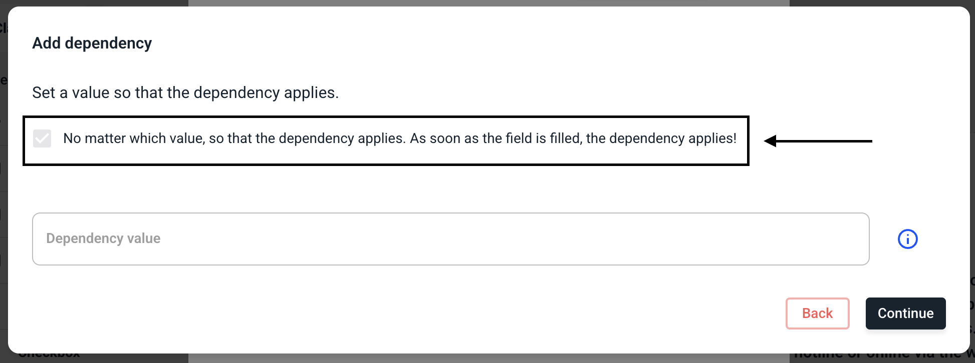 Now select that the dependency should apply regardless of the value in the field.