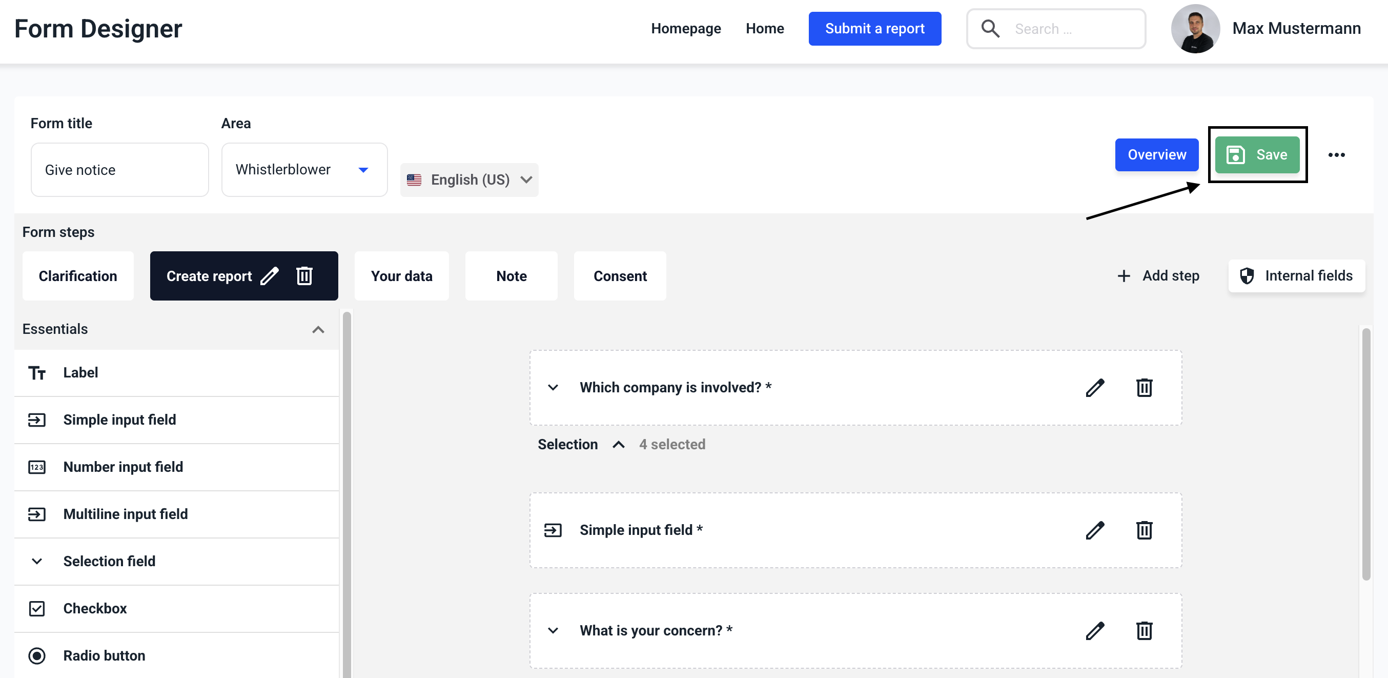 If a field is mandatory, the reporting person must complete it in order to submit their report.