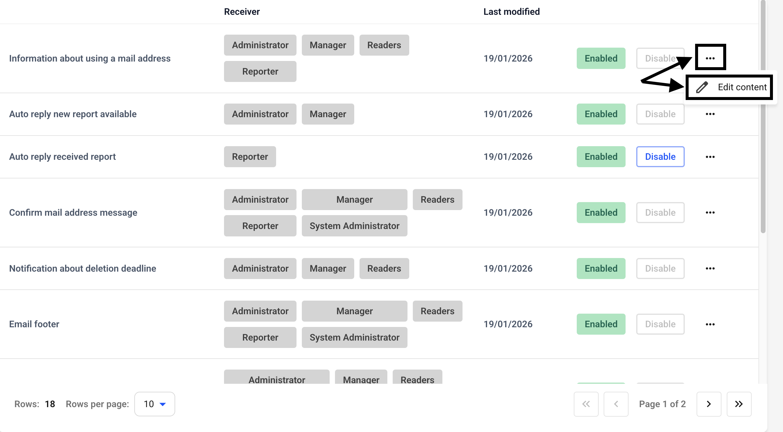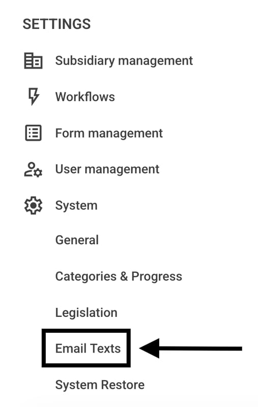 To edit the email texts click Settings → System → Email texts.