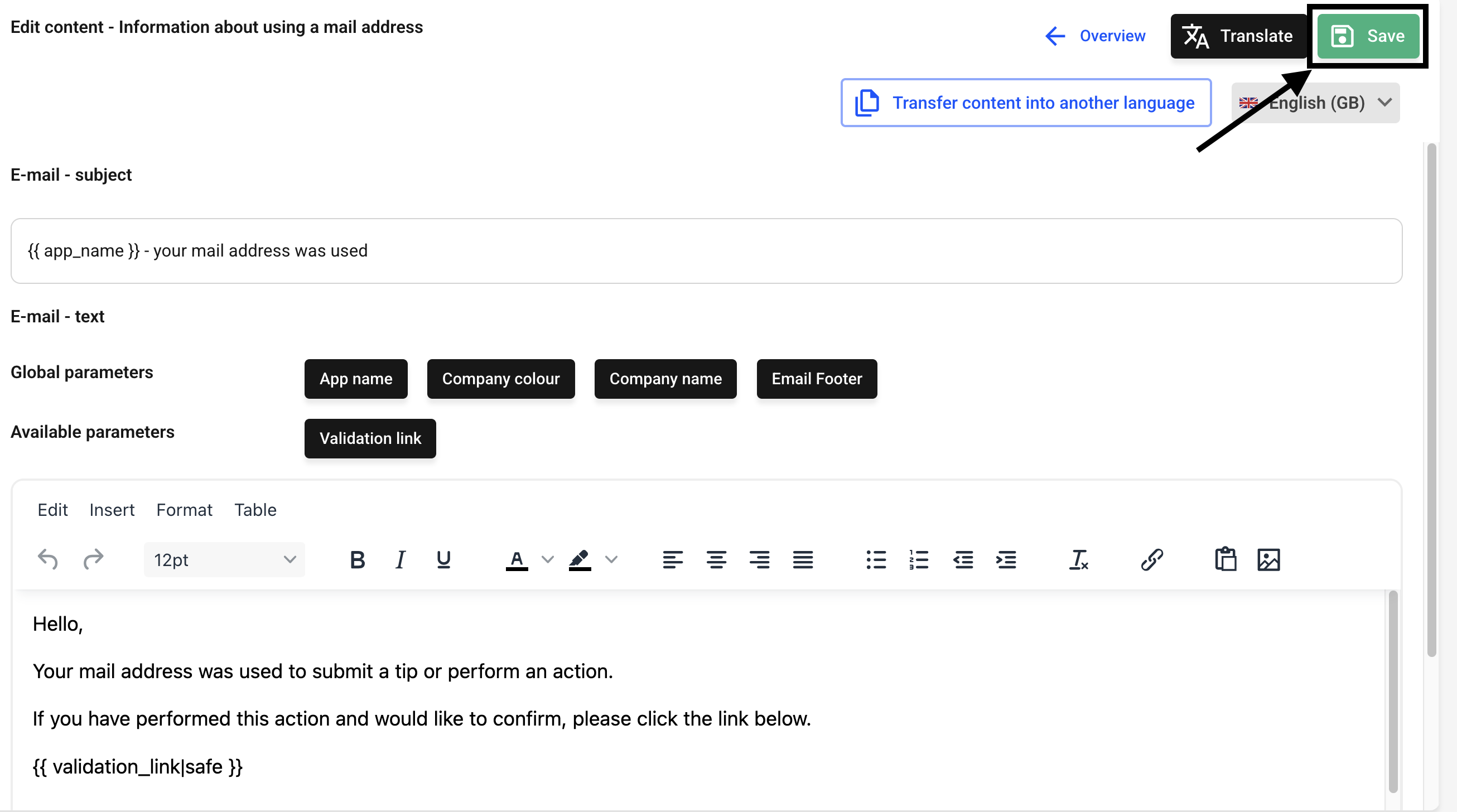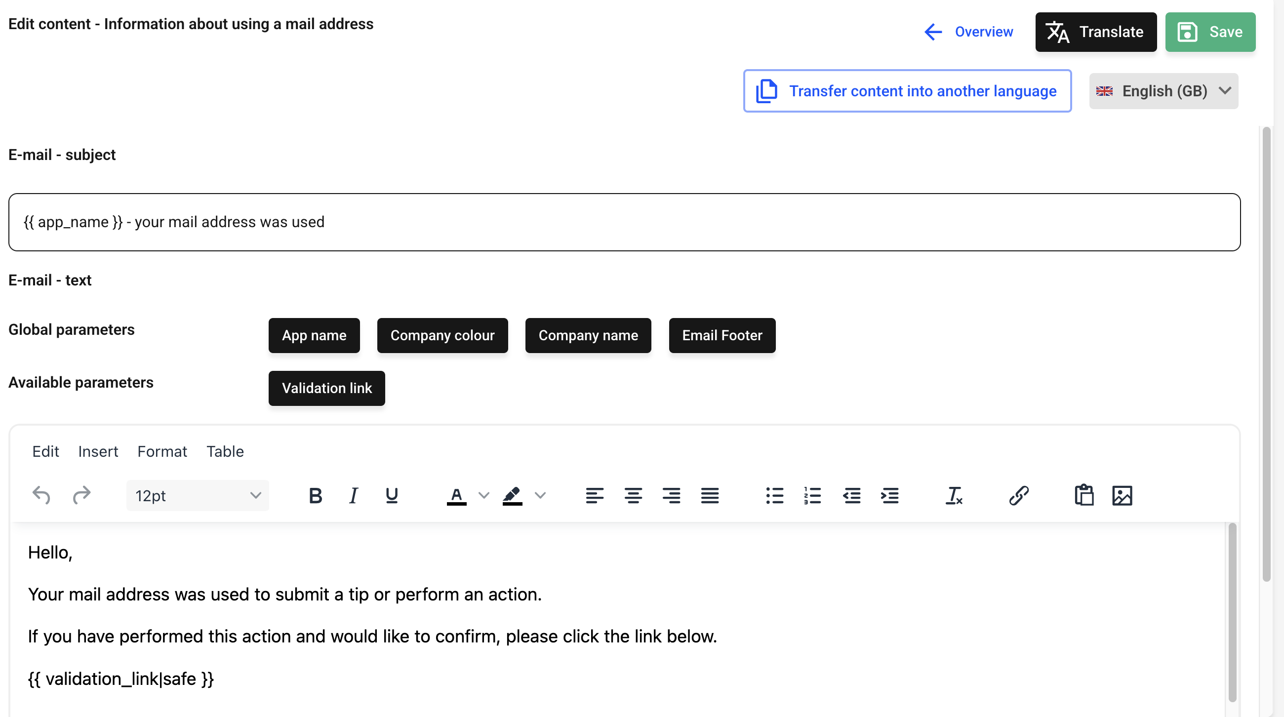 In this chapter we will explain how to customize an email text.