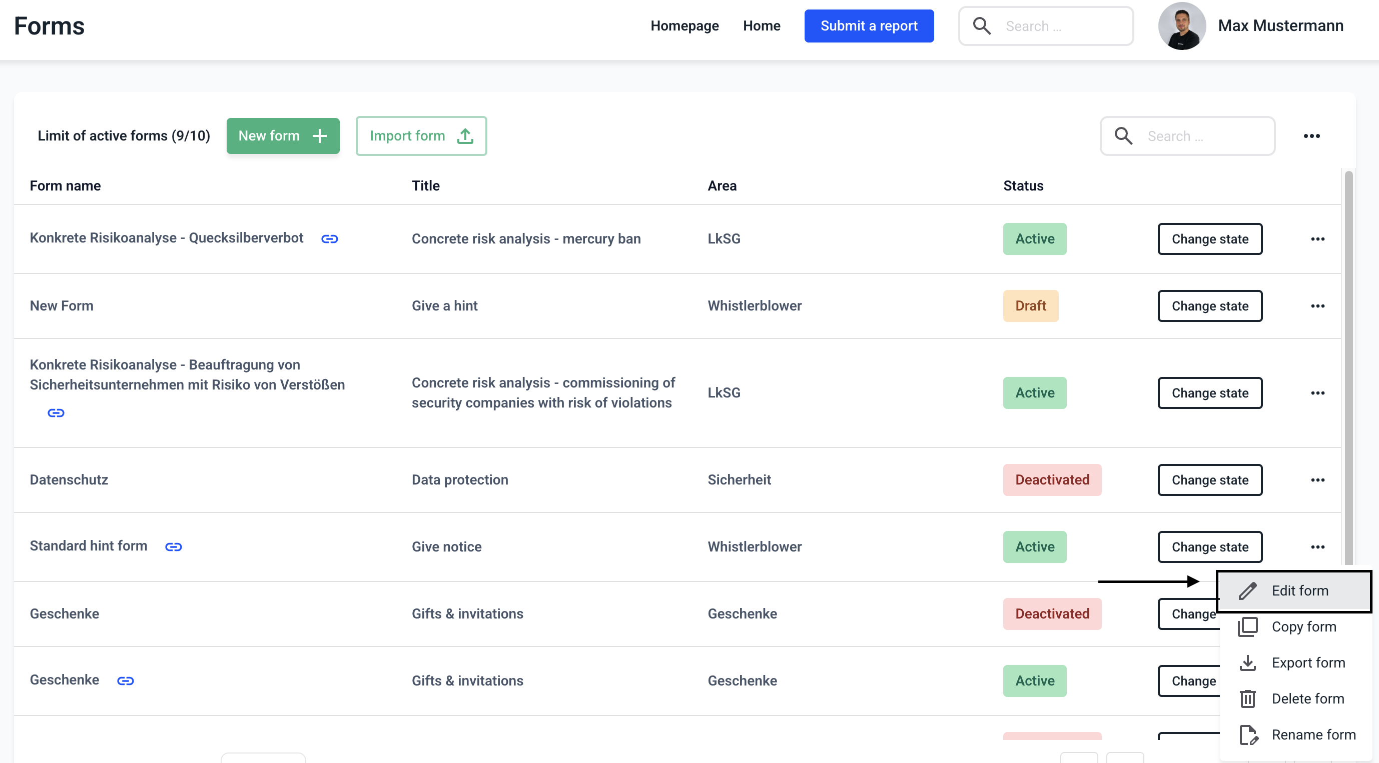 Each form can be edited. To do this, navigate to the Form management.