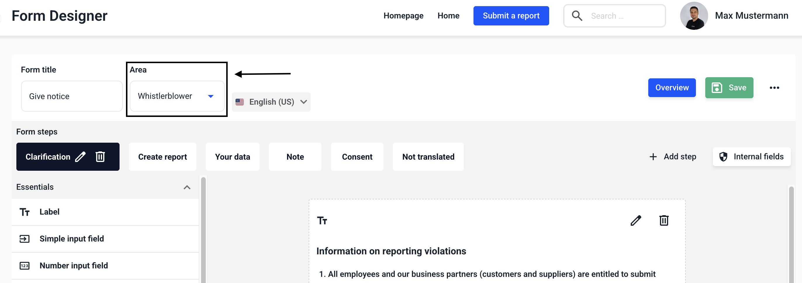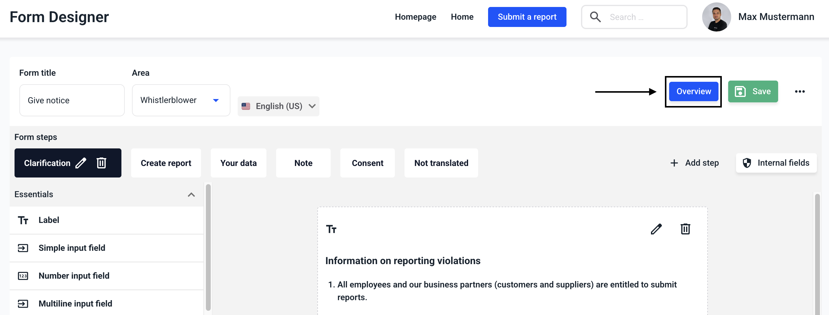 Click on Overview to return to the form management.