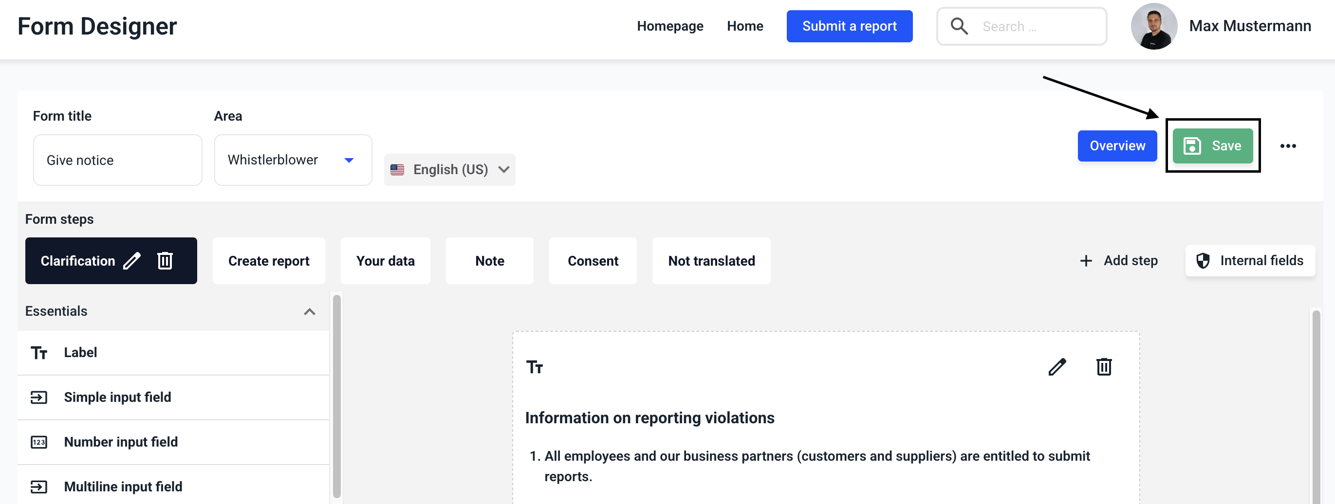 You must confirm all changes to the form by clicking on Save.