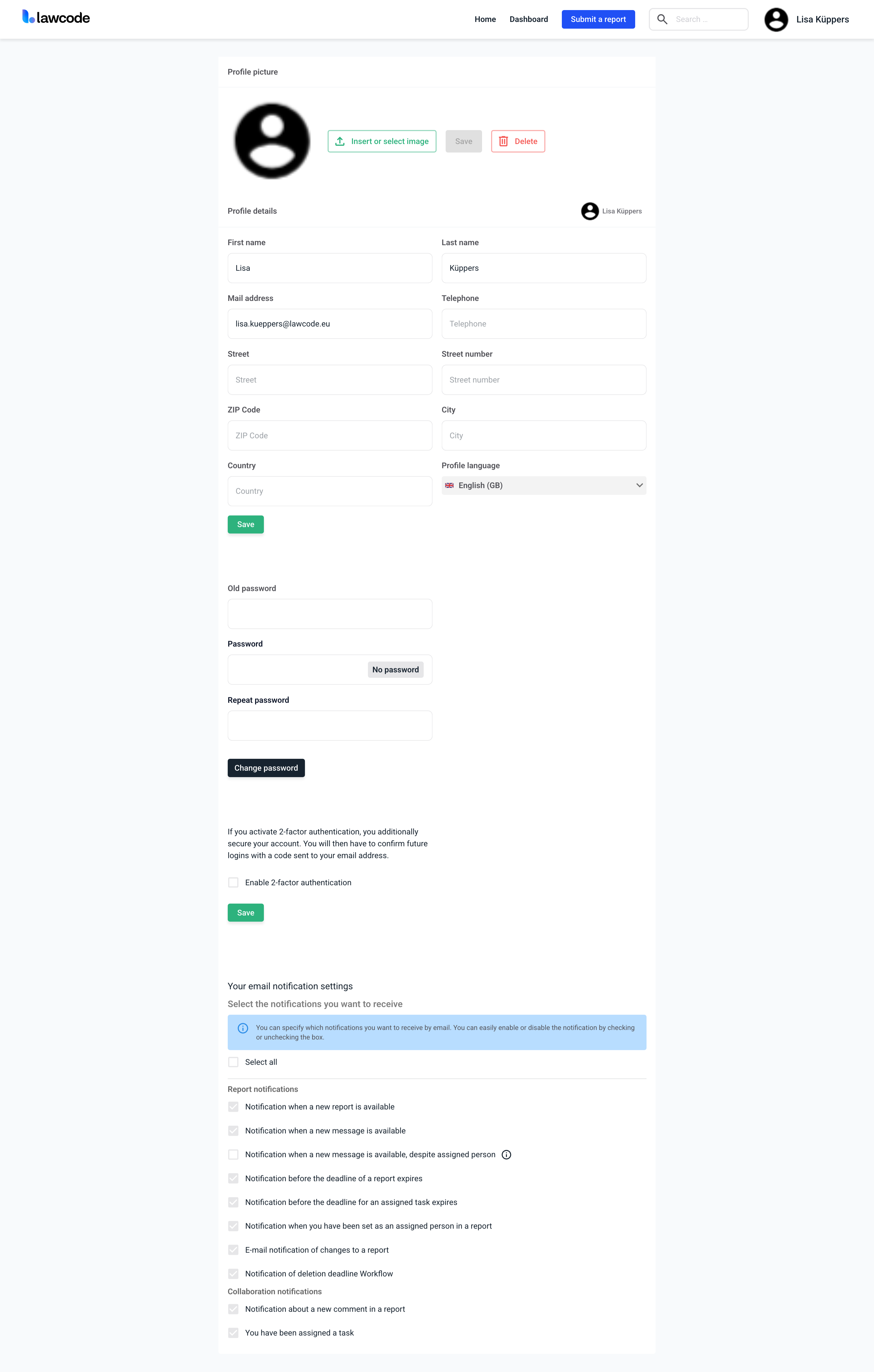 Adjust the desired information. Once you have done this, click Save to save the changes.