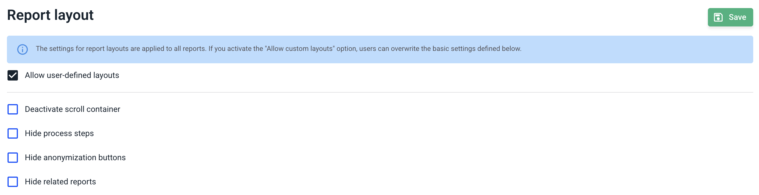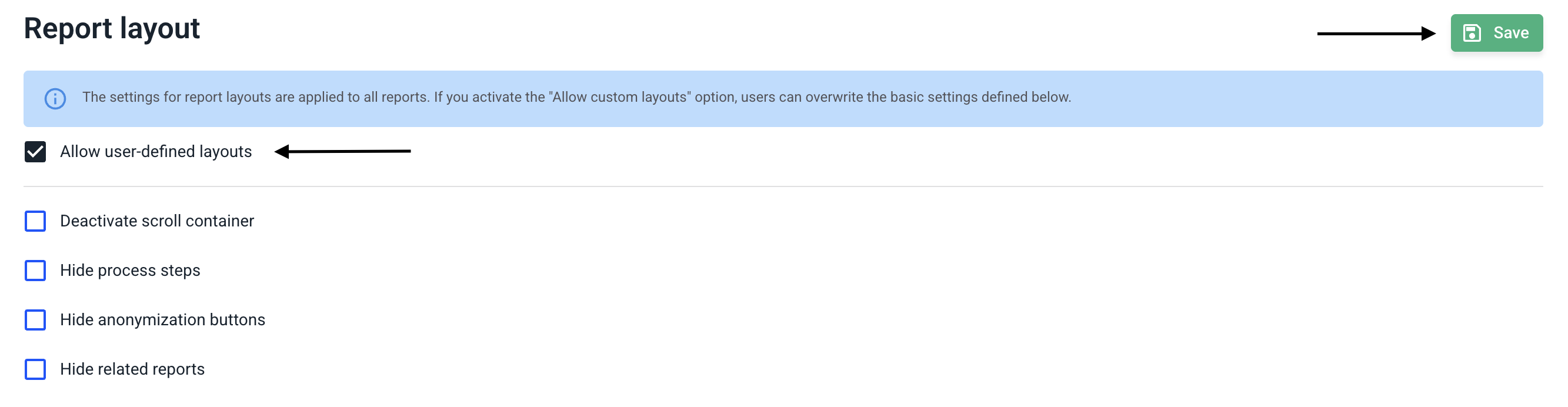 You can now use the checkbox for allow user-defined layouts to decide whether to enable or disable them. Check the box if you want to allow the layout and uncheck it if you want to disable the feature.