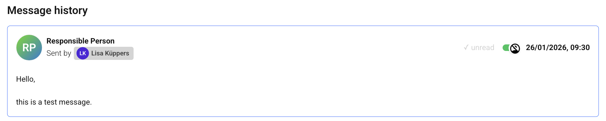 Messages can be sent between managers and whistleblowers for a report. To do this, click on “Messages” in the report detail view and the overview of messages should then open. Here you can see all written messages between whistleblowers and case handlers