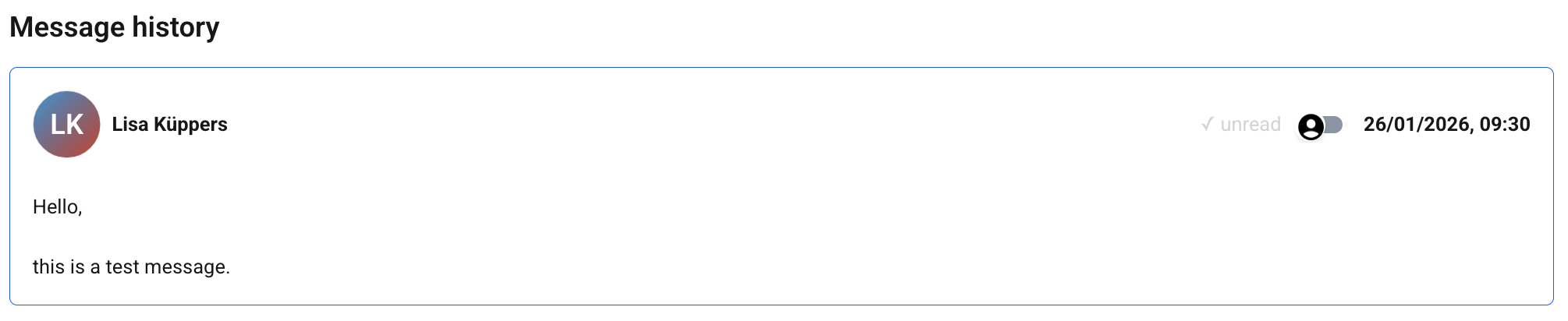 Messages can be sent between the manager and the whistleblower for a tip. To do this, click on "Messages" in the tip detail view and the message overview should open. Here you can see all messages written between whistleblowers and case managers