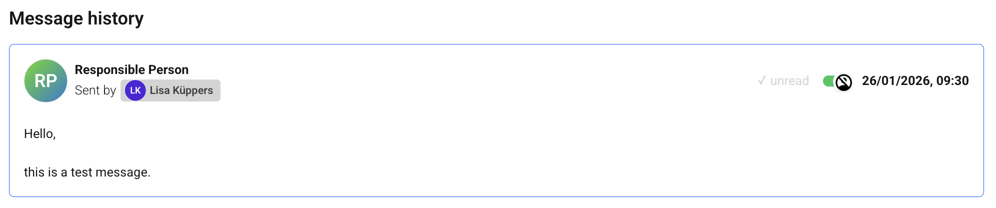 The anonymization of sent messages can still be removed by the manager afterwards. To do this, click on “Messages” in the message detail view and the message overview should open. Here you can see all written messages between whistleblowers and case handlers