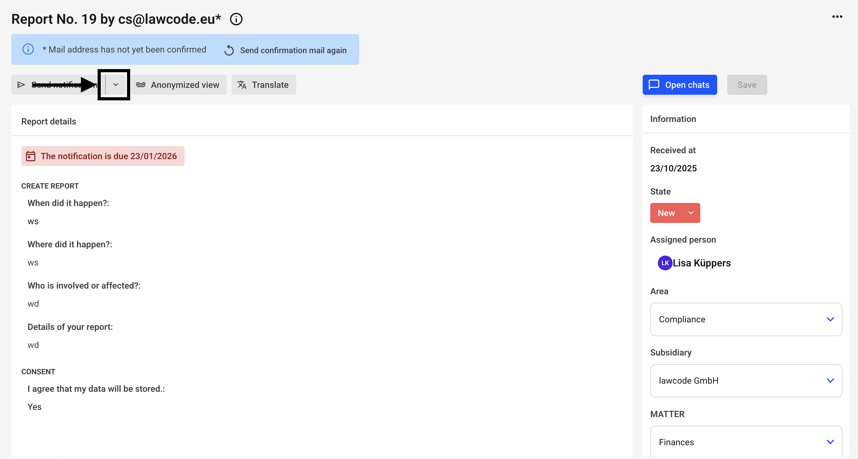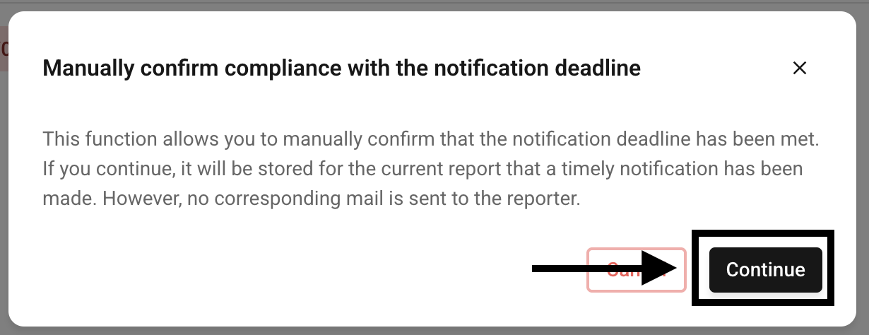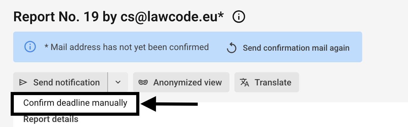 In addition to the predefined e-mail, you can also confirm the deadline manually. This manual confirmation is useful if you have informed the whistleblower about the processing progress by other means.
