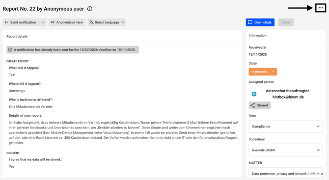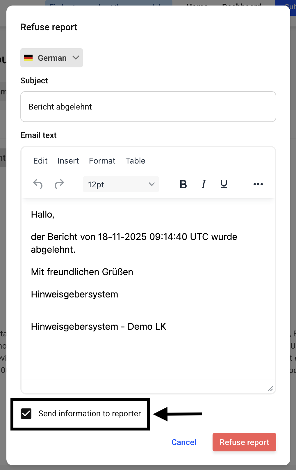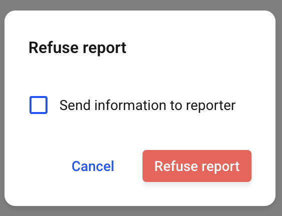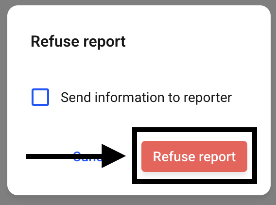 Afterwards you have to click on "Refuse report" to finally reject the note.