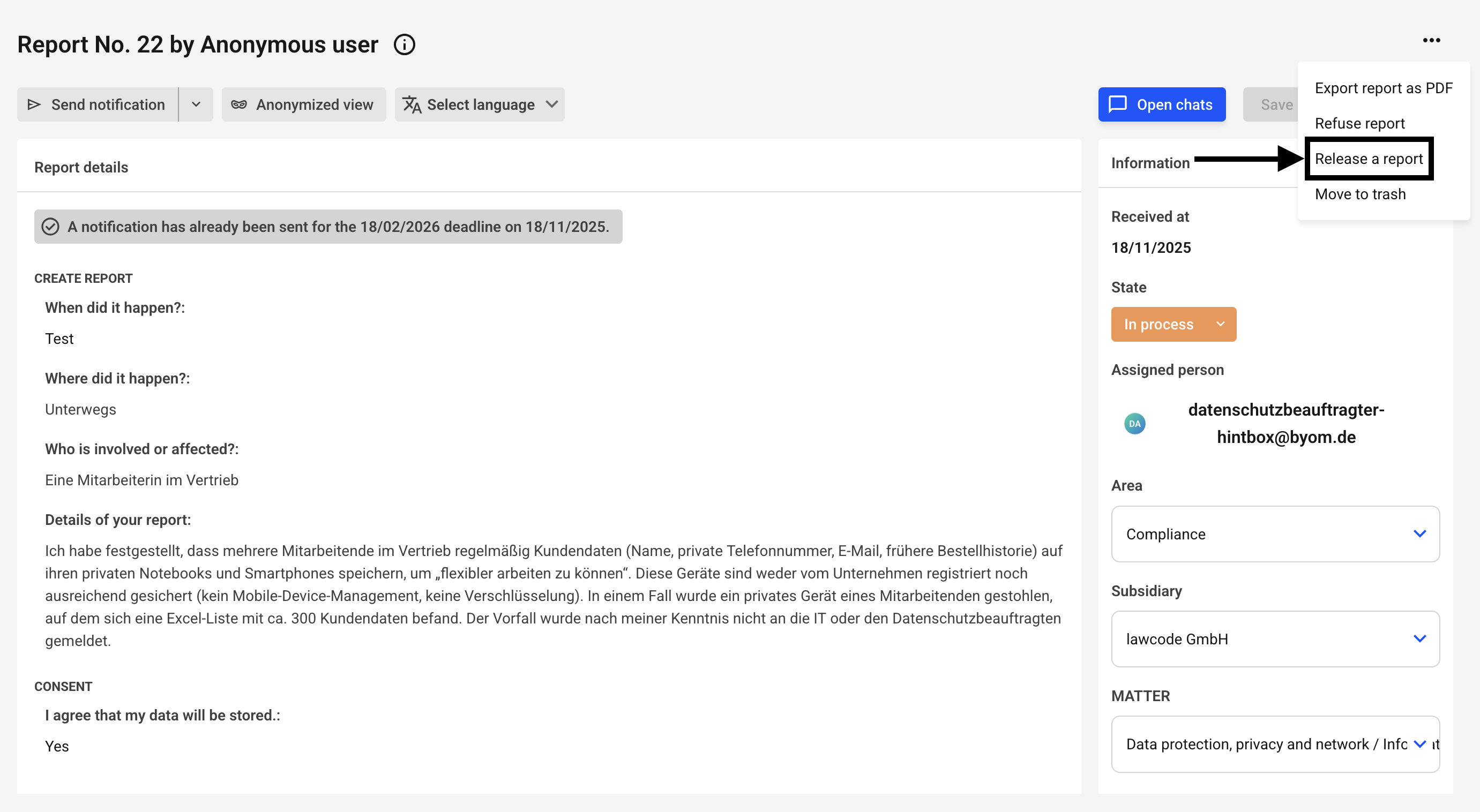 This chapter explains how you can release the notes to a case handler with the “Reader” role.