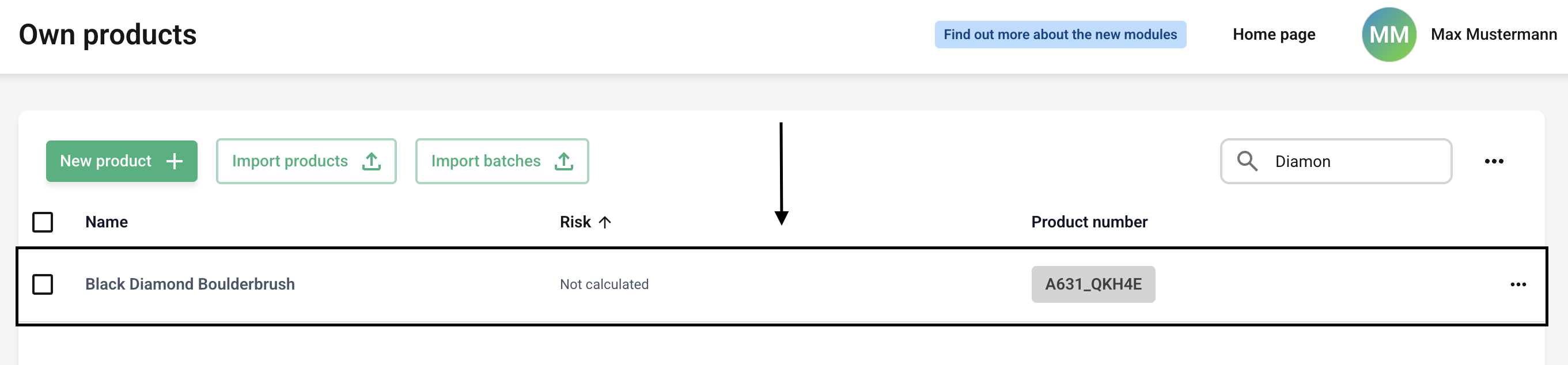 Now click on the line of the desired product that you want to rename.