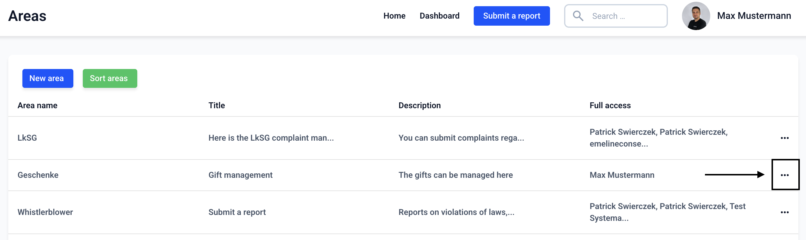 Navigate to the Areas.