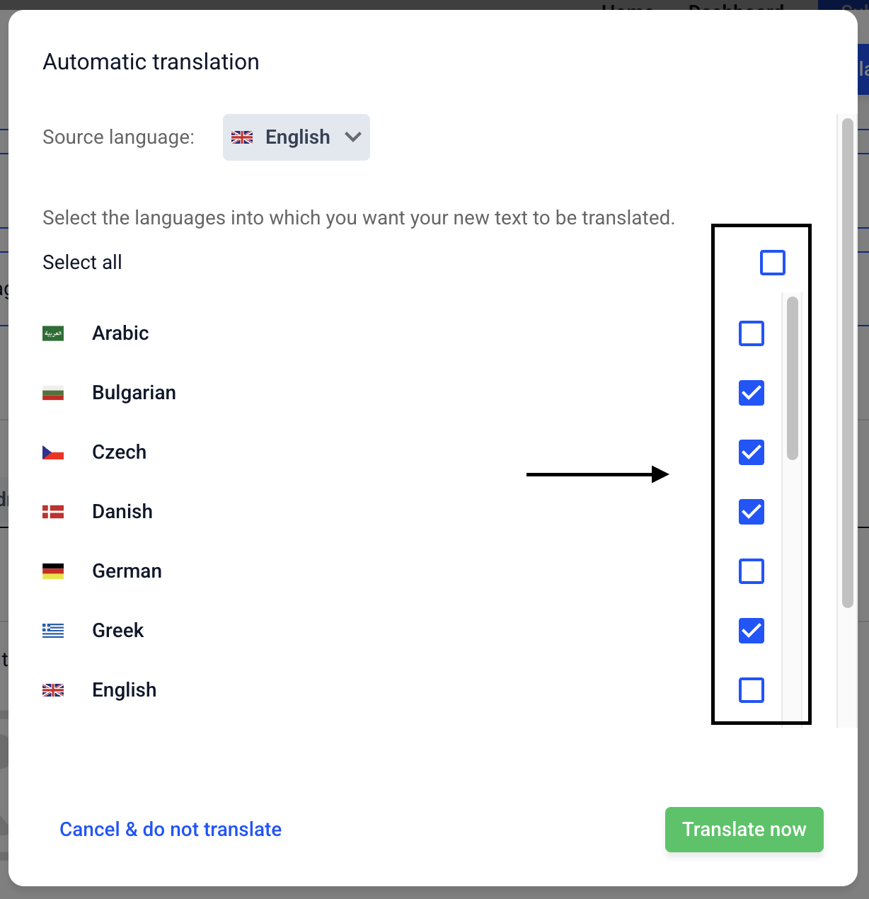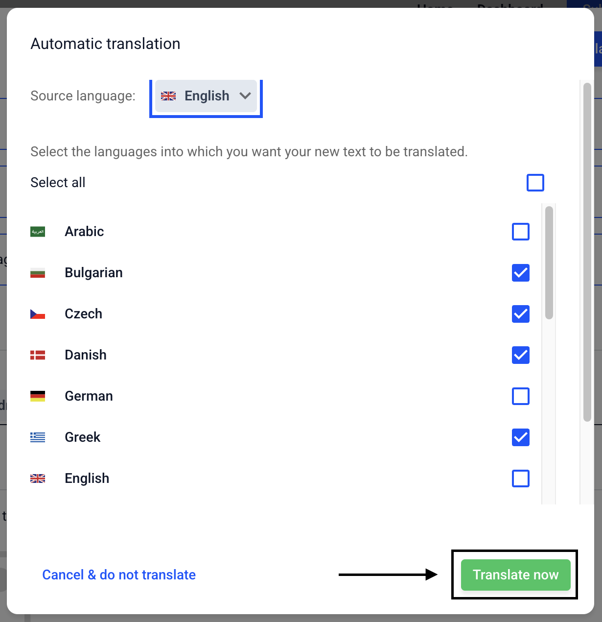 Select the languages you want to translate into.