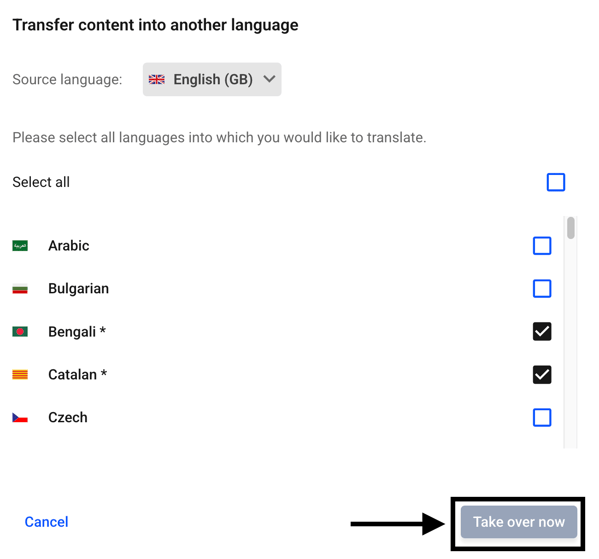 Instead of translating or manually editing e-mail texts, it is possible to transfer them. The text will be transferred to all selected languages with content and formatting. To edit the email texts click Settings → System → Email texts.