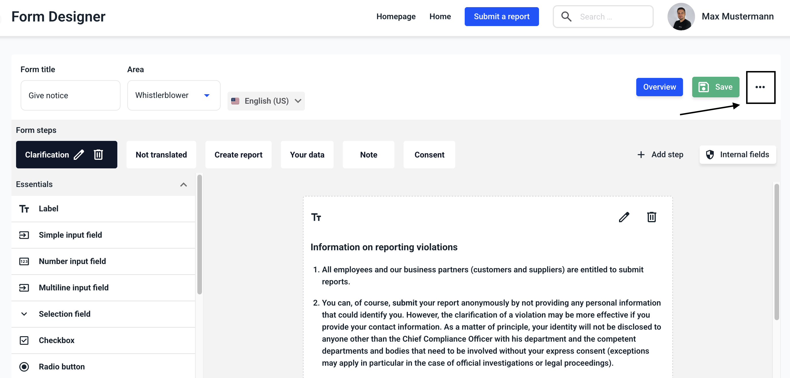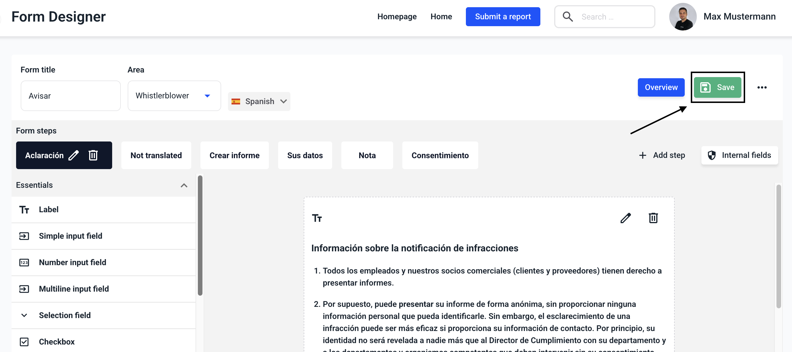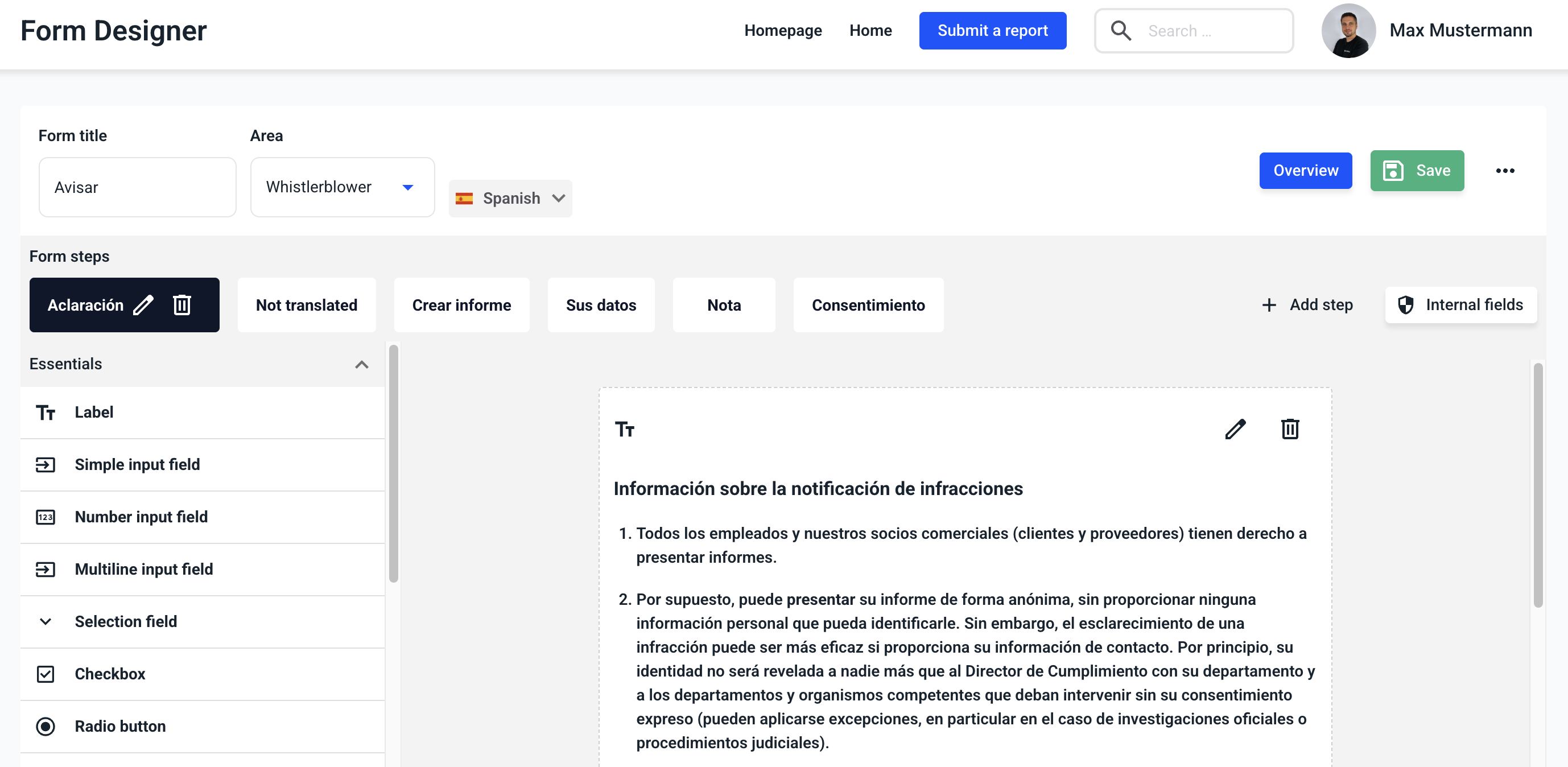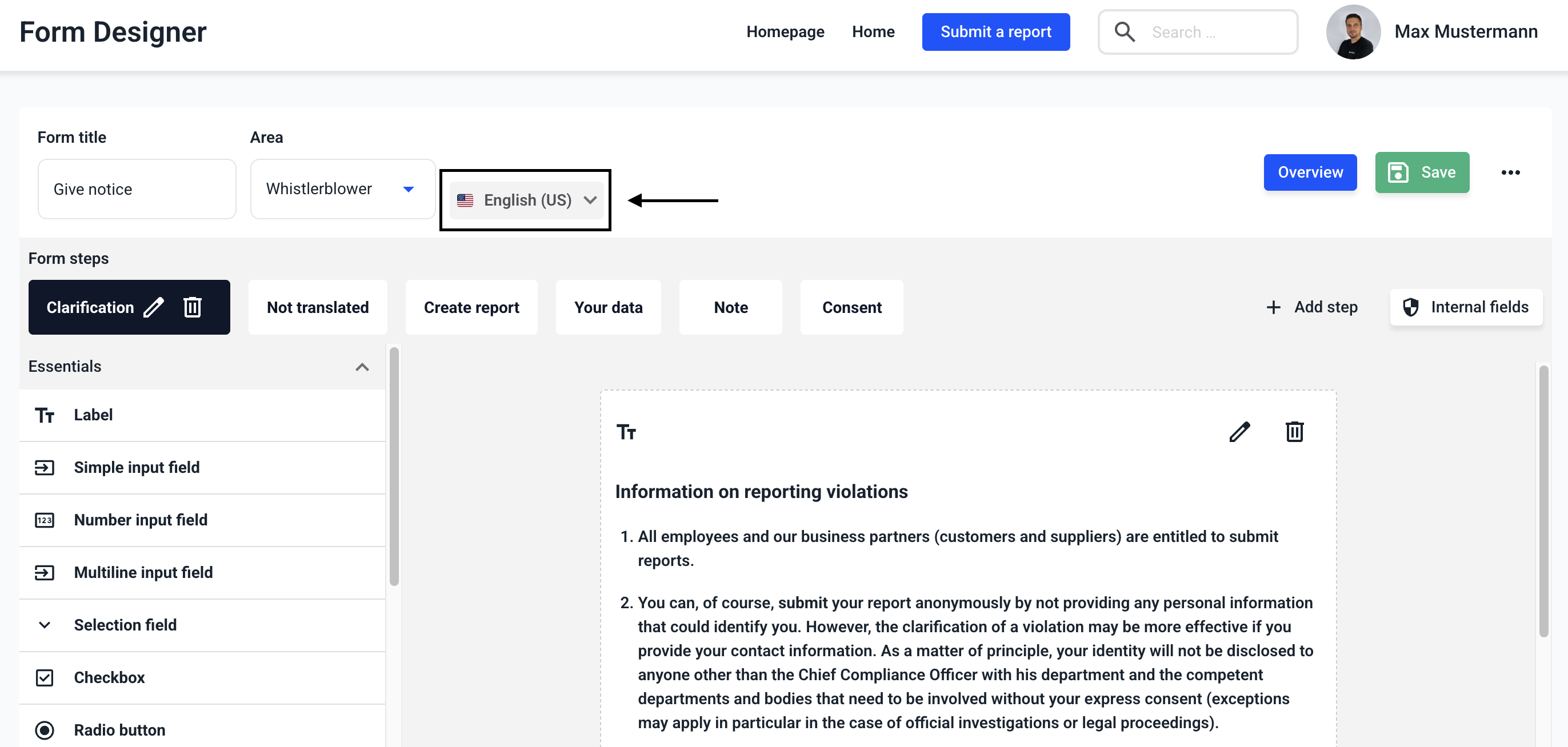 Each form can be translated. To do this, first navigate to the Form management.
