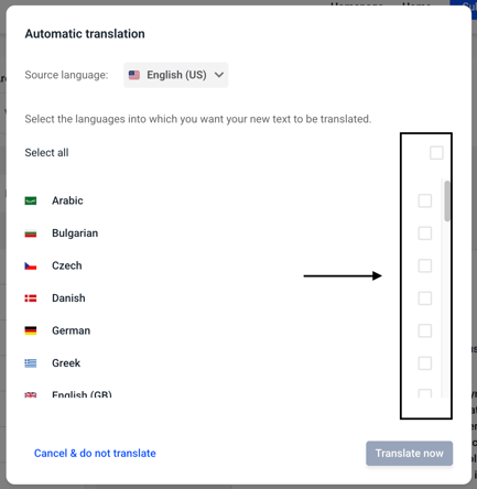 Click on the language in which you want to check the translation.
