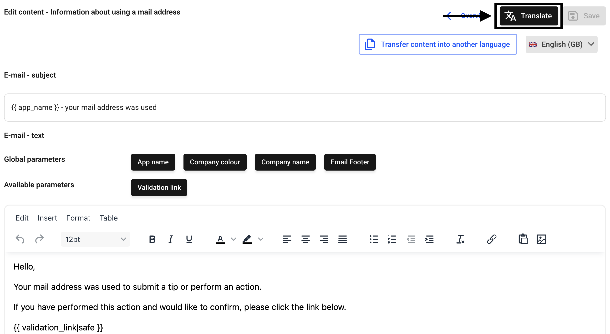 How can I translate an emailtext?