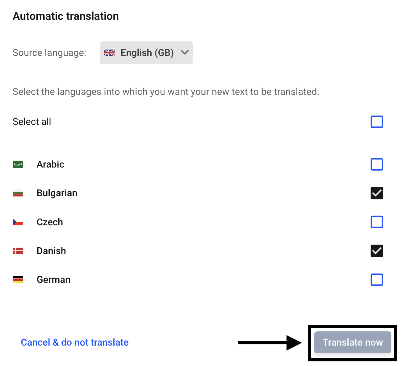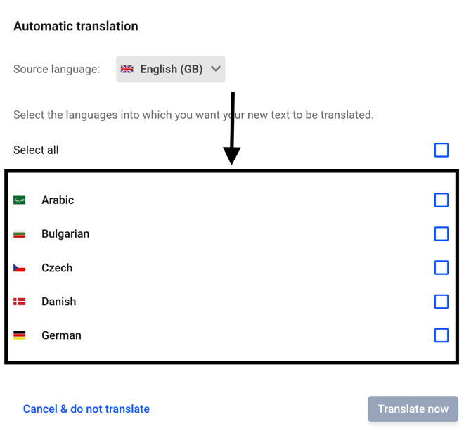 Then you can select the languages into which the text should be translated.