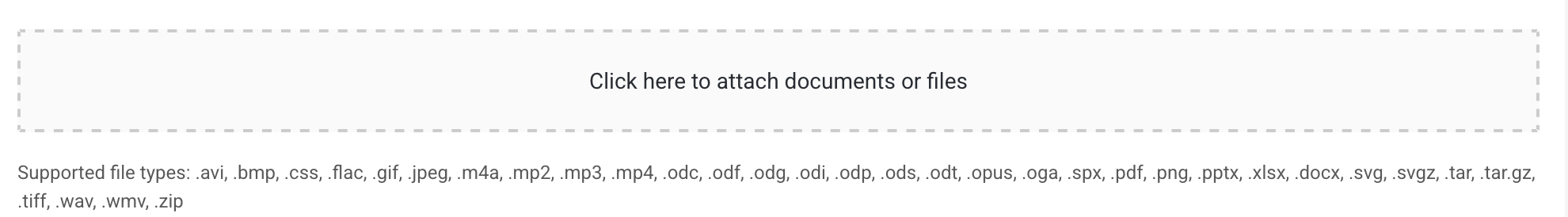 By clicking on "Click here to attach documents or files" or using drag and drop, you can upload files or documents to the note.