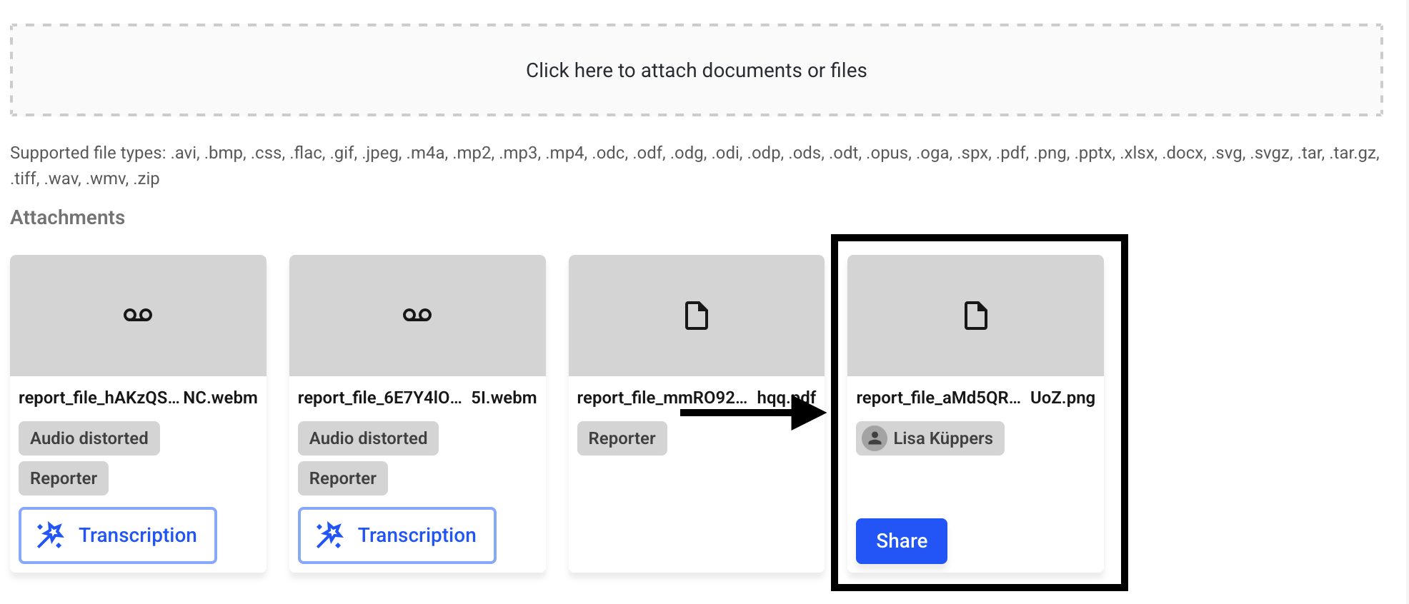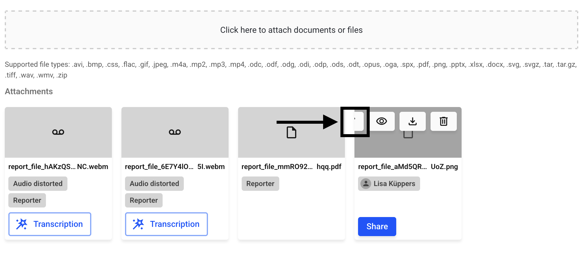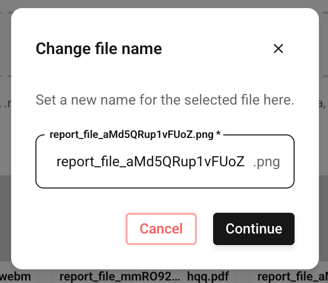 Files that are already uploaded in the report can be renamed afterwards with a click on the pencil.