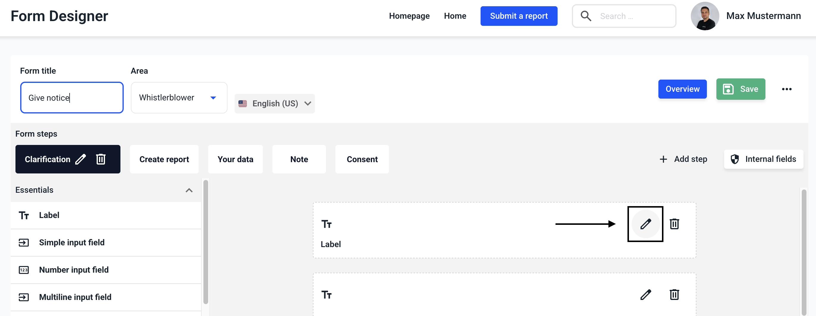 Select a label field in the spring selection and drag it into the form with the mouse.