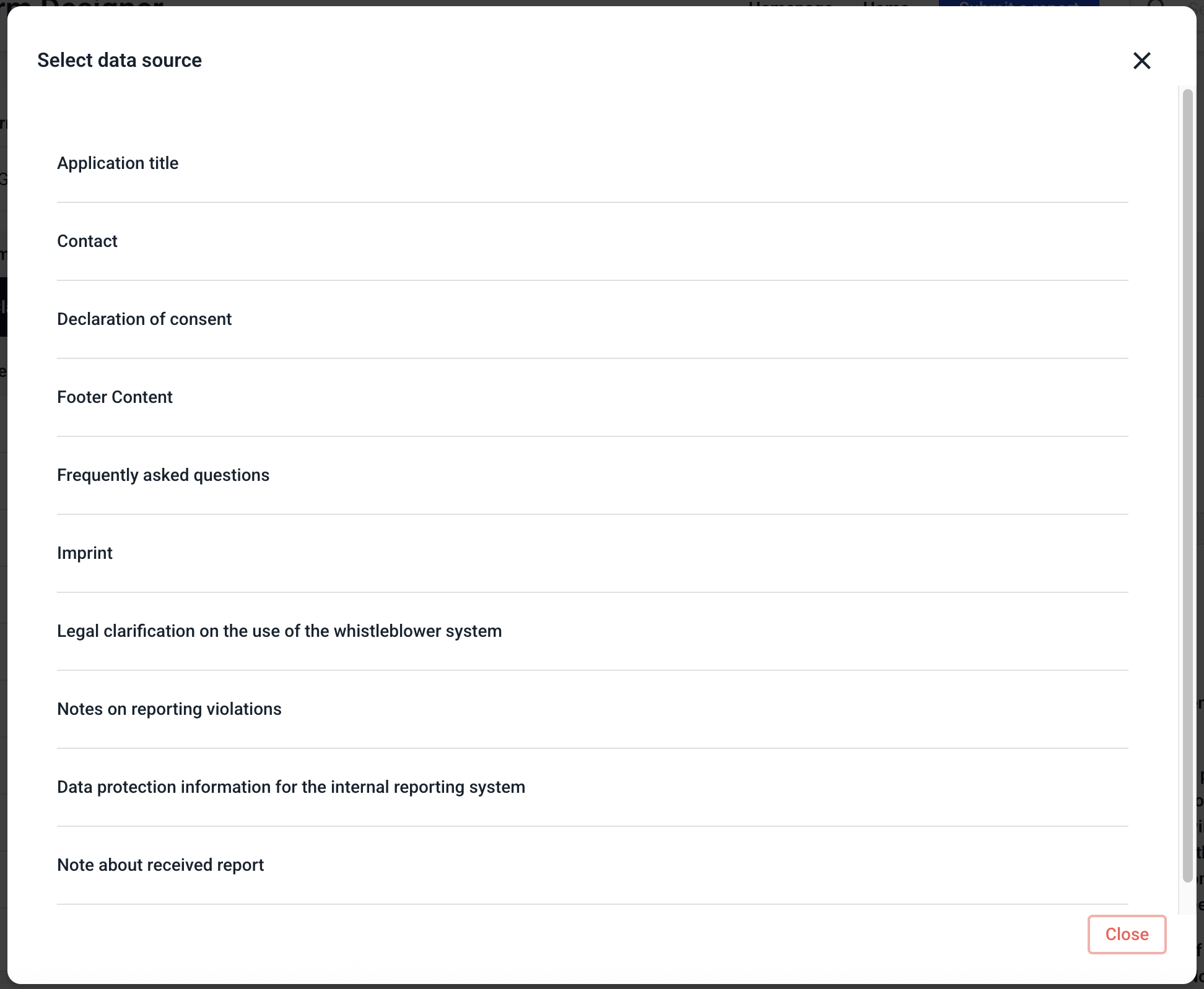 The data source of the legal texts allows you to adopt any desired legal text in your form and keep it up to date in the event of changes to the legal texts.