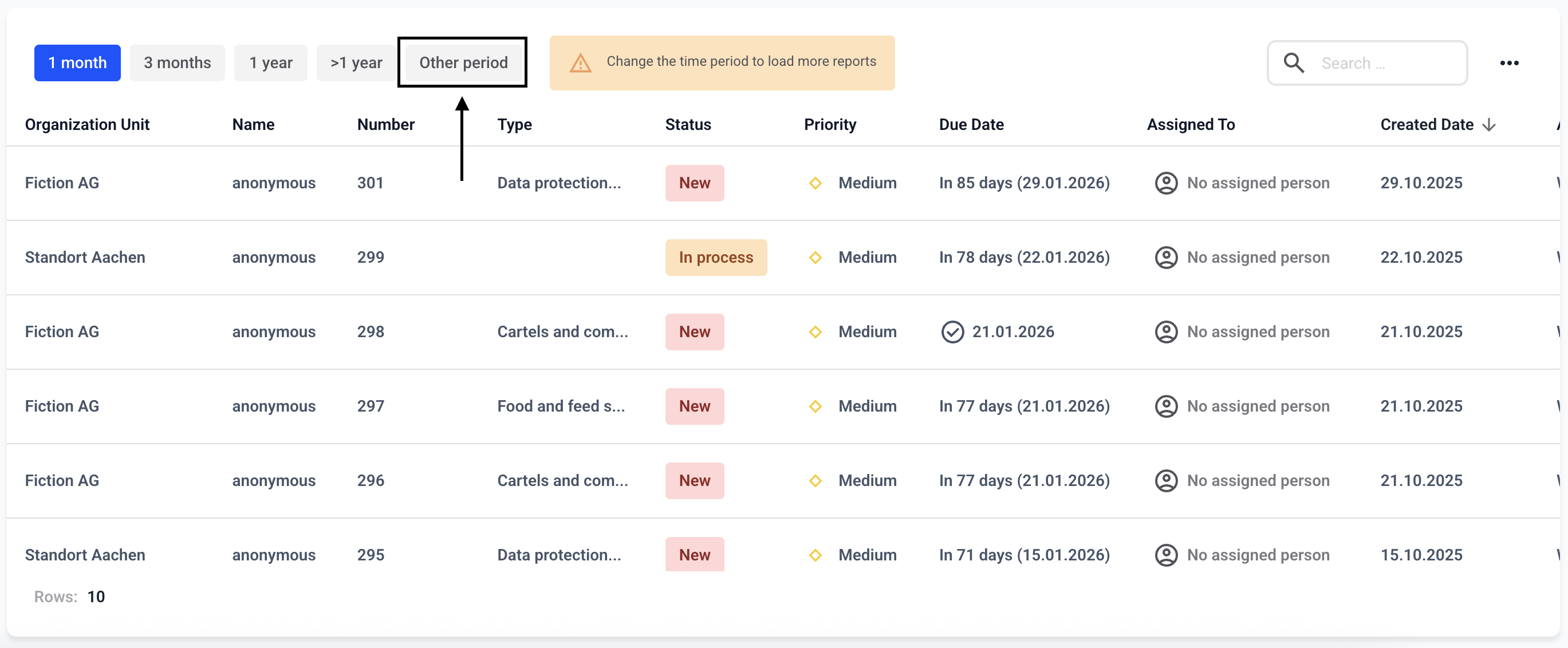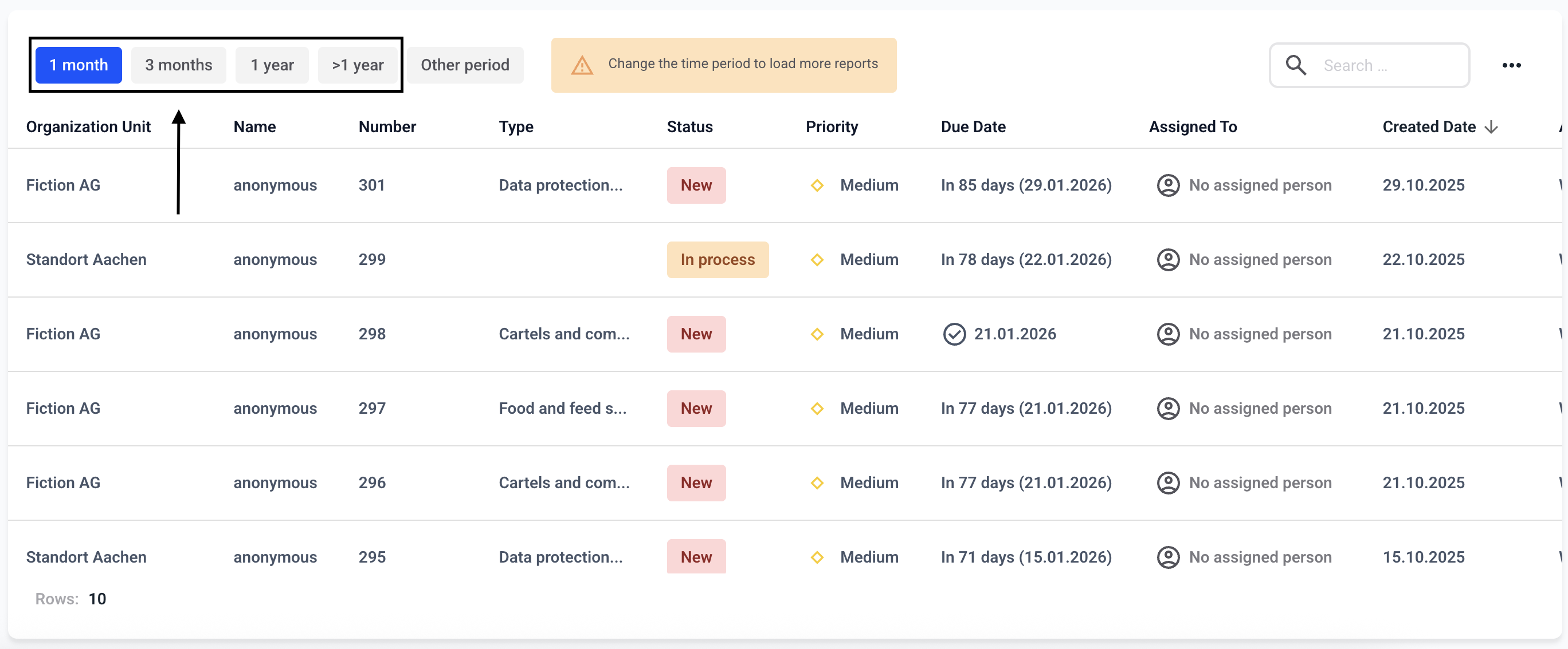 Confirm your desired time period with Ok, after that you should only see notes that match the desired time period.