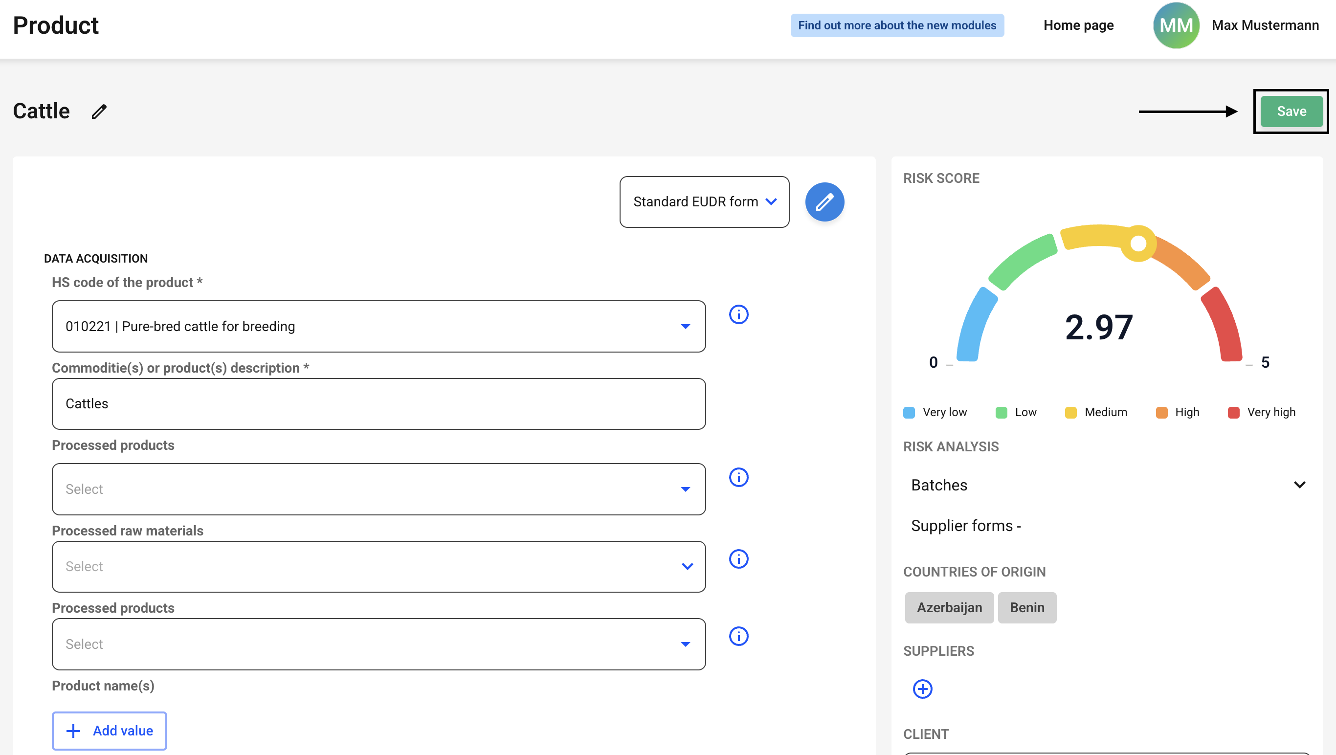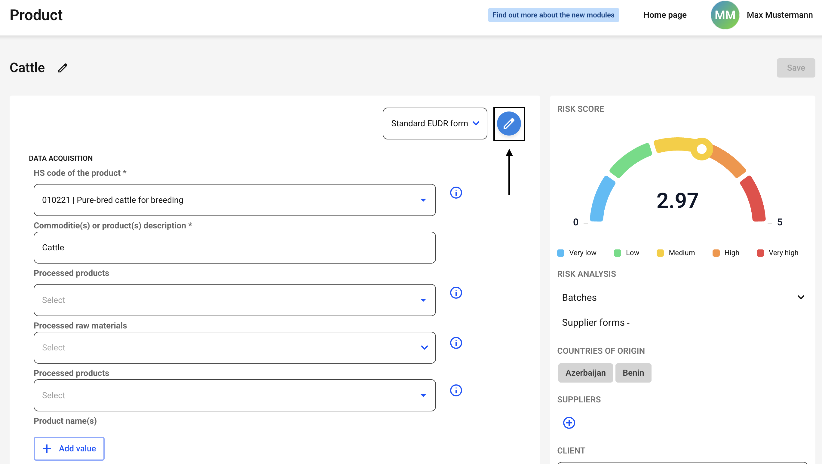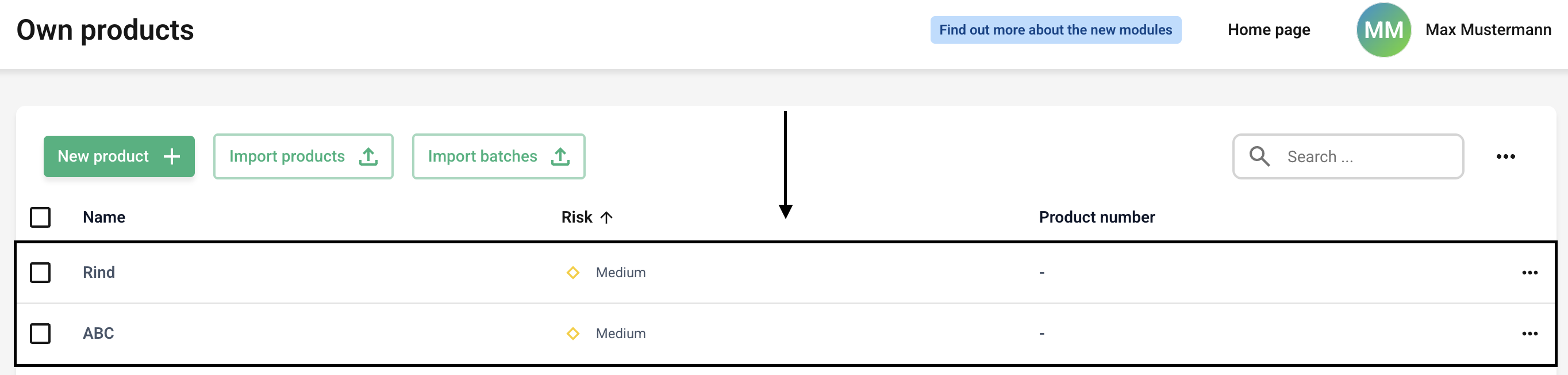 Now click on the line of the desired product that you want to edit.