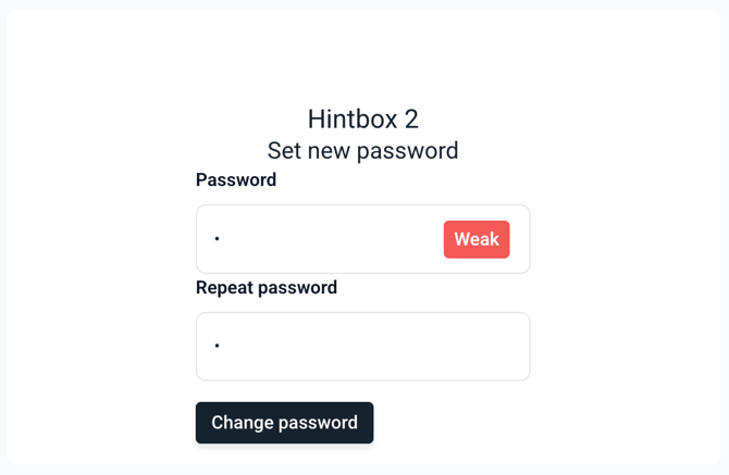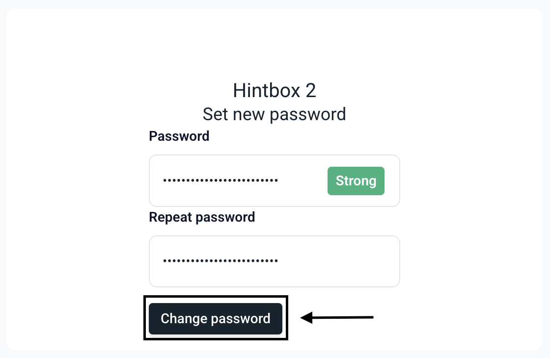 Open the e-mail and click on the link. You will get to the following view, where you can enter your new password in the marked fields.