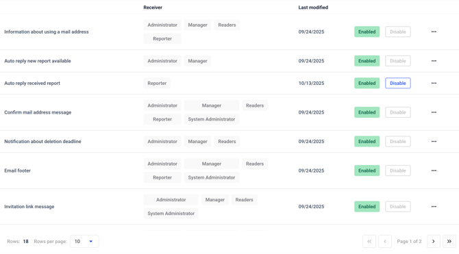 Whenever a whistleblower or an internal processor presses “Send report” within a report, the template is triggered.