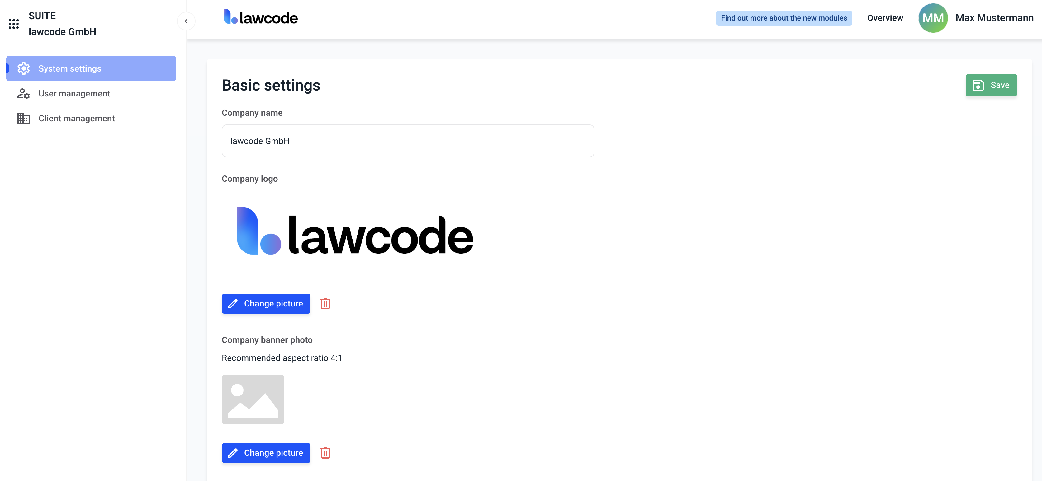 Please note that the system settings in the Suite can be transferred to all modules. In the system settings of the various modules, you can select whether the Suite system settings should be adopted or whether an individual adjustment should be made for the specific module.