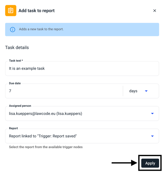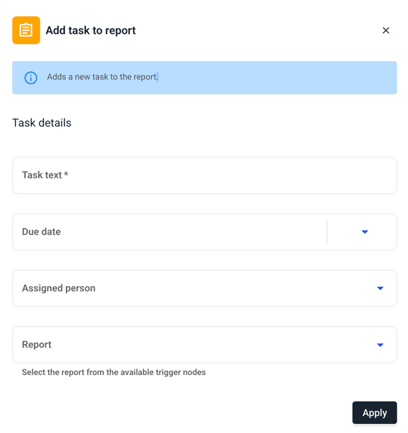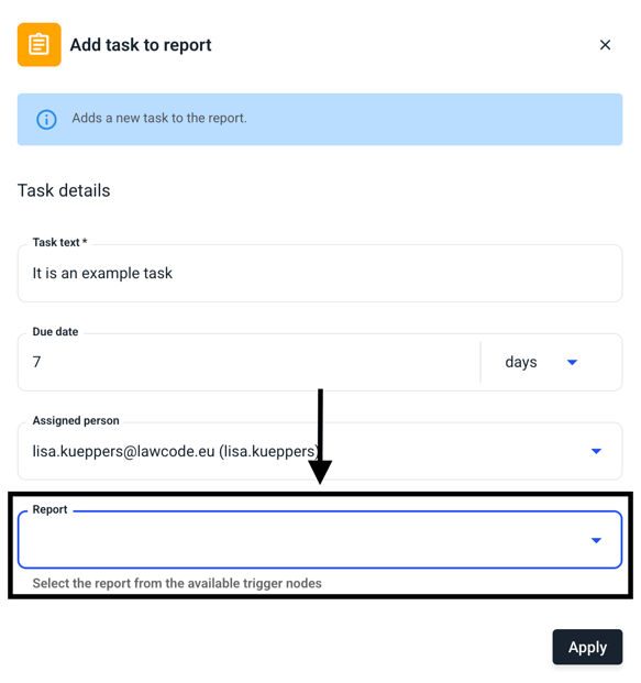This chapter explains how to assign a task to a report within the workflow.